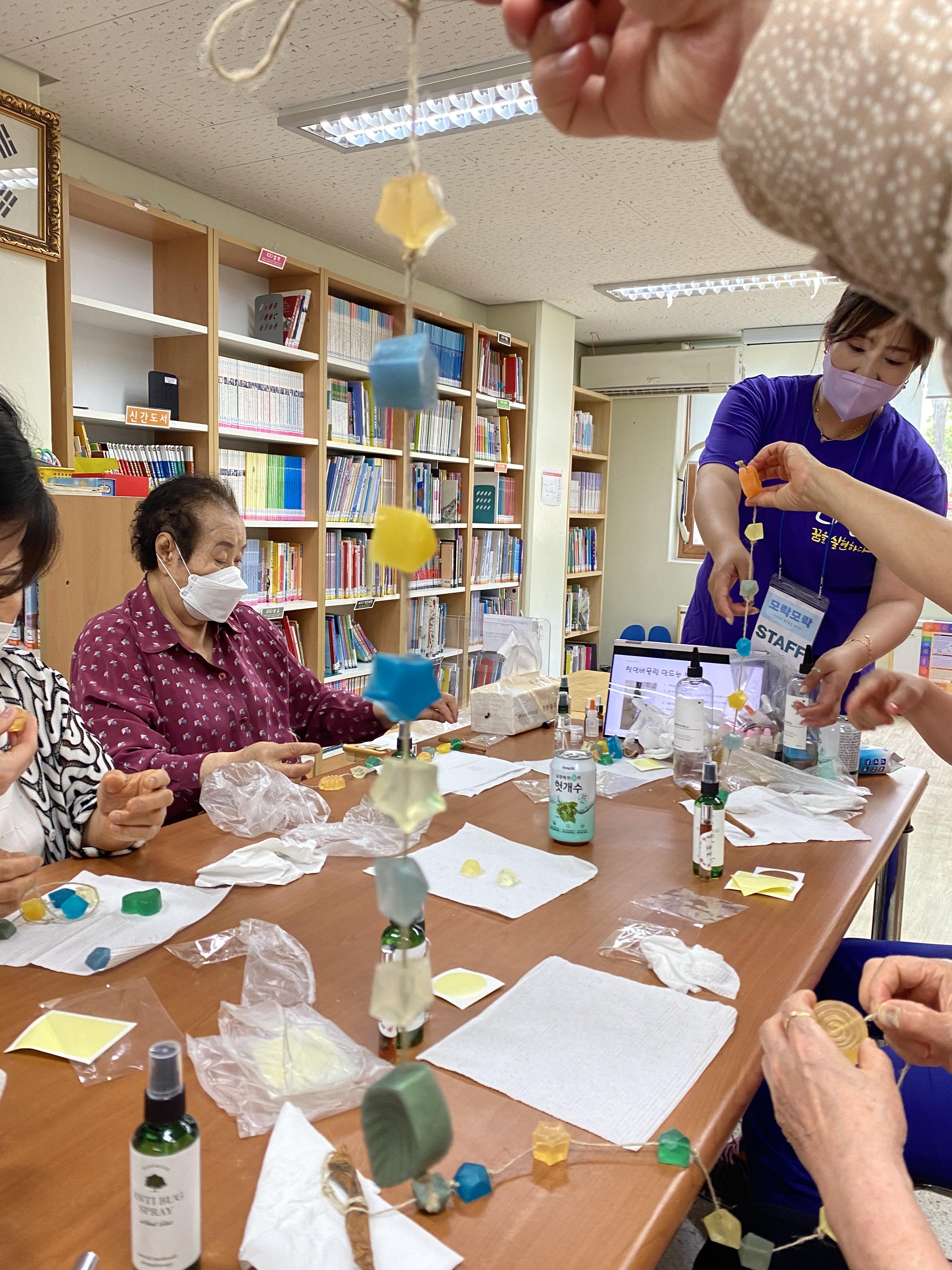 비누를 꺼내 주시자마자 향이 확 퍼졌습니다. 향으로 힐링하는 것 같다는 봉사단 분들.