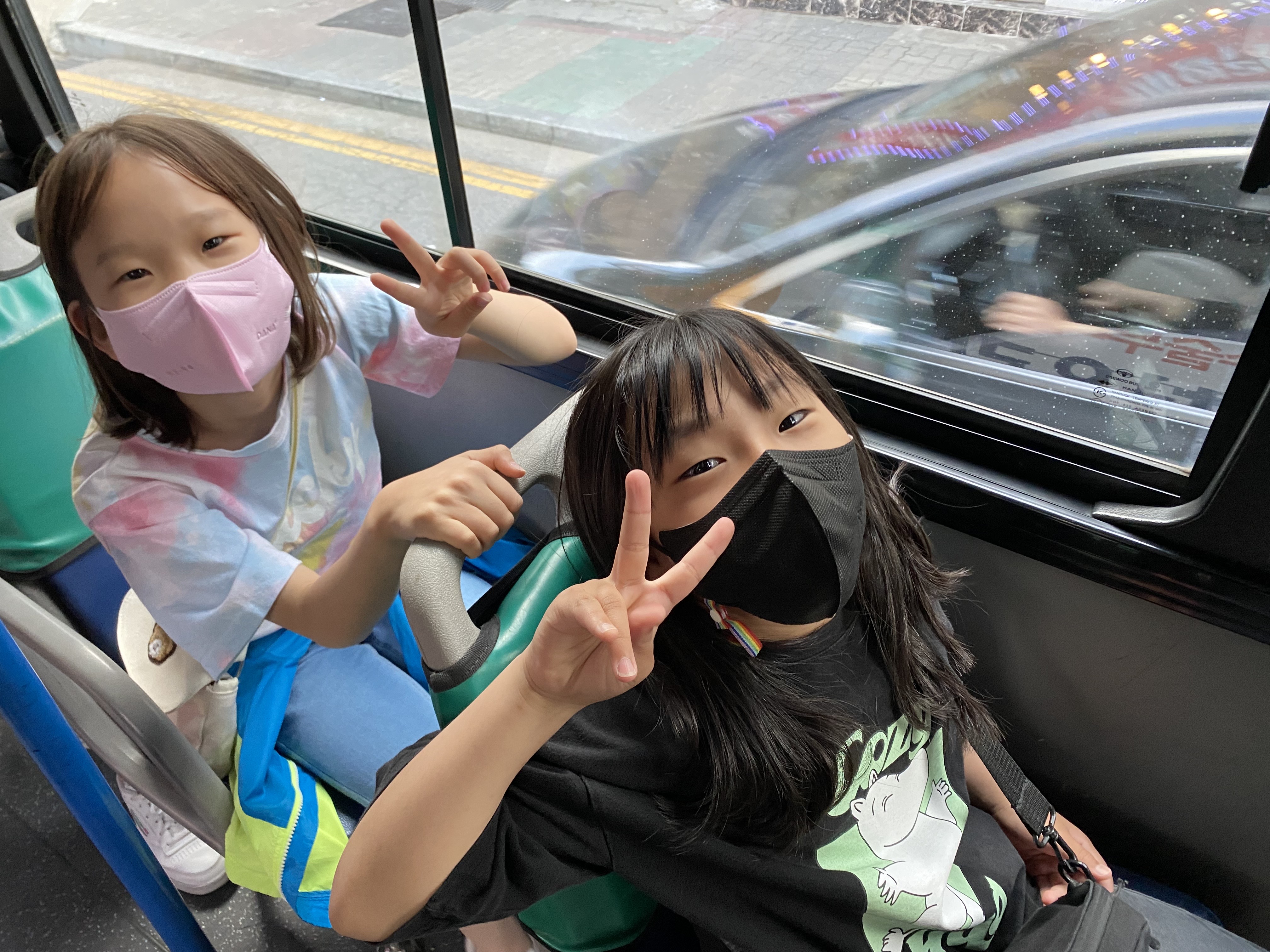 버스 정류장에서도 조잘조잘 아이들의 에너지는 여전합니다.