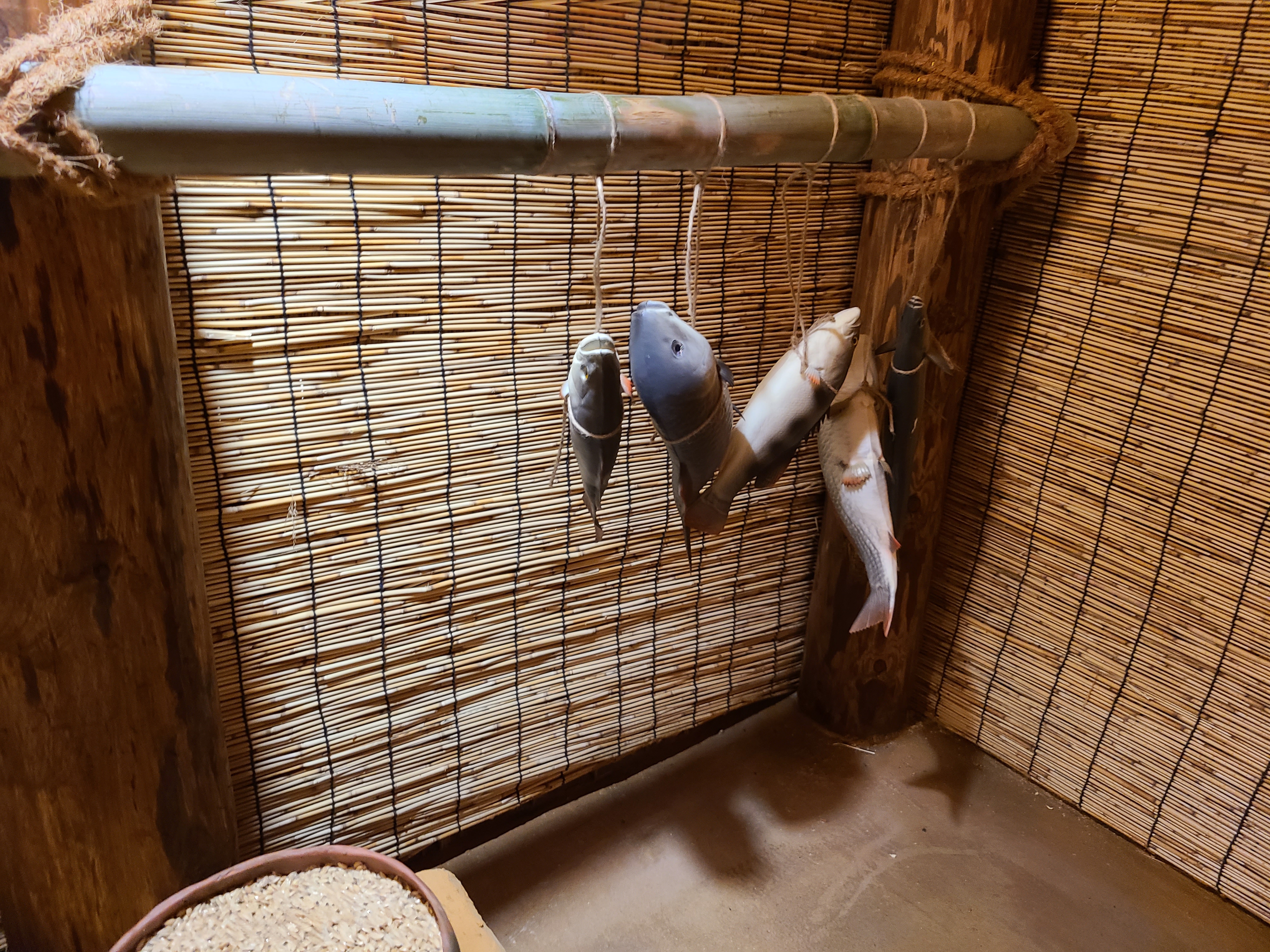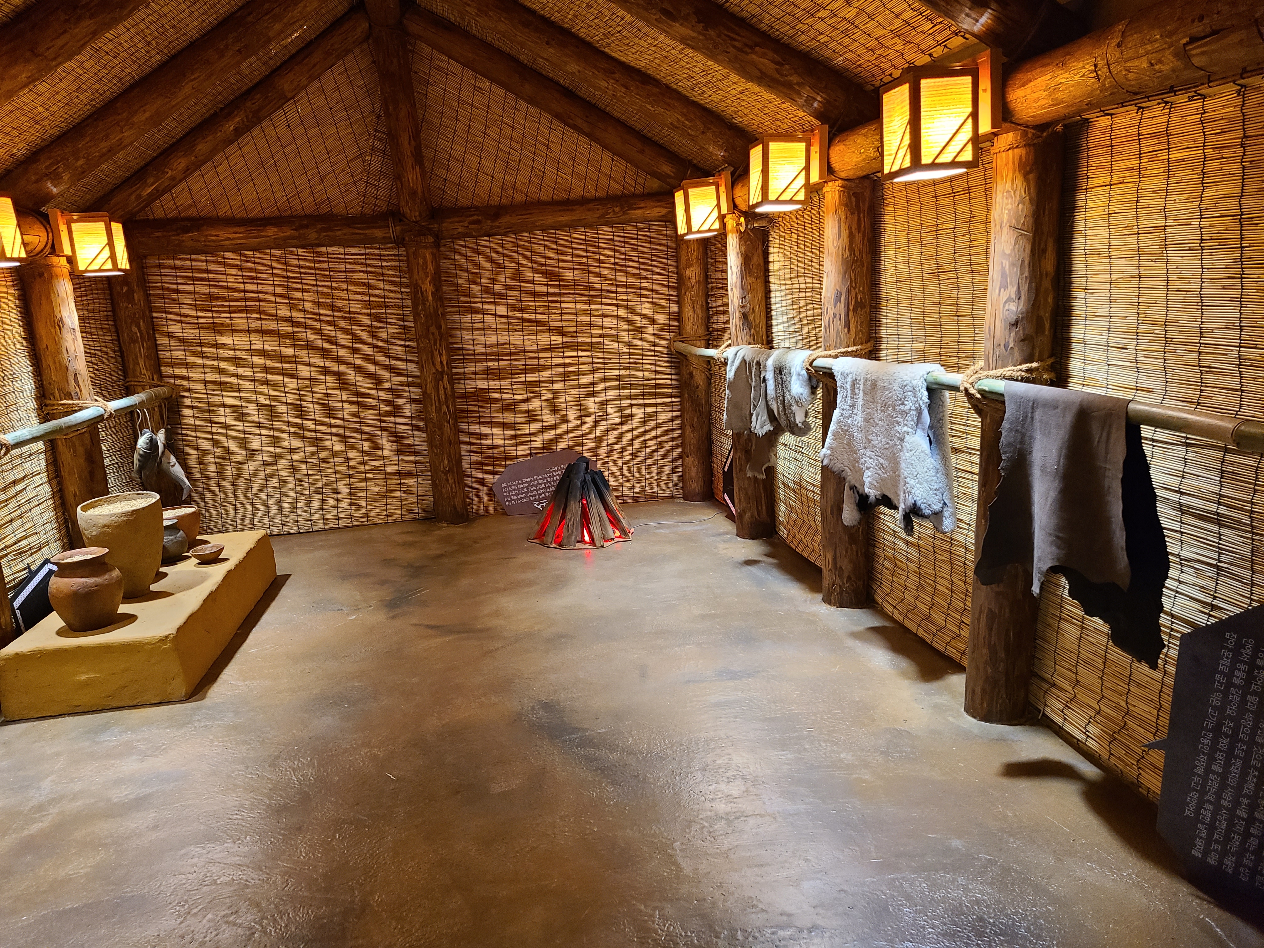 아이들이 직접 유적도 발굴해보고, 화살로 멧돼지와 고라니도 잡아보고(화살로 멧돼지와 고라니를 맞추면 꾸웨엑~하고 우는 소리가 나요!!!) 청동기시대의 움집에서 음식과 의복(동물의 가죽)을 보관하는 방법도 알 수 있게 움집도 있습니다.