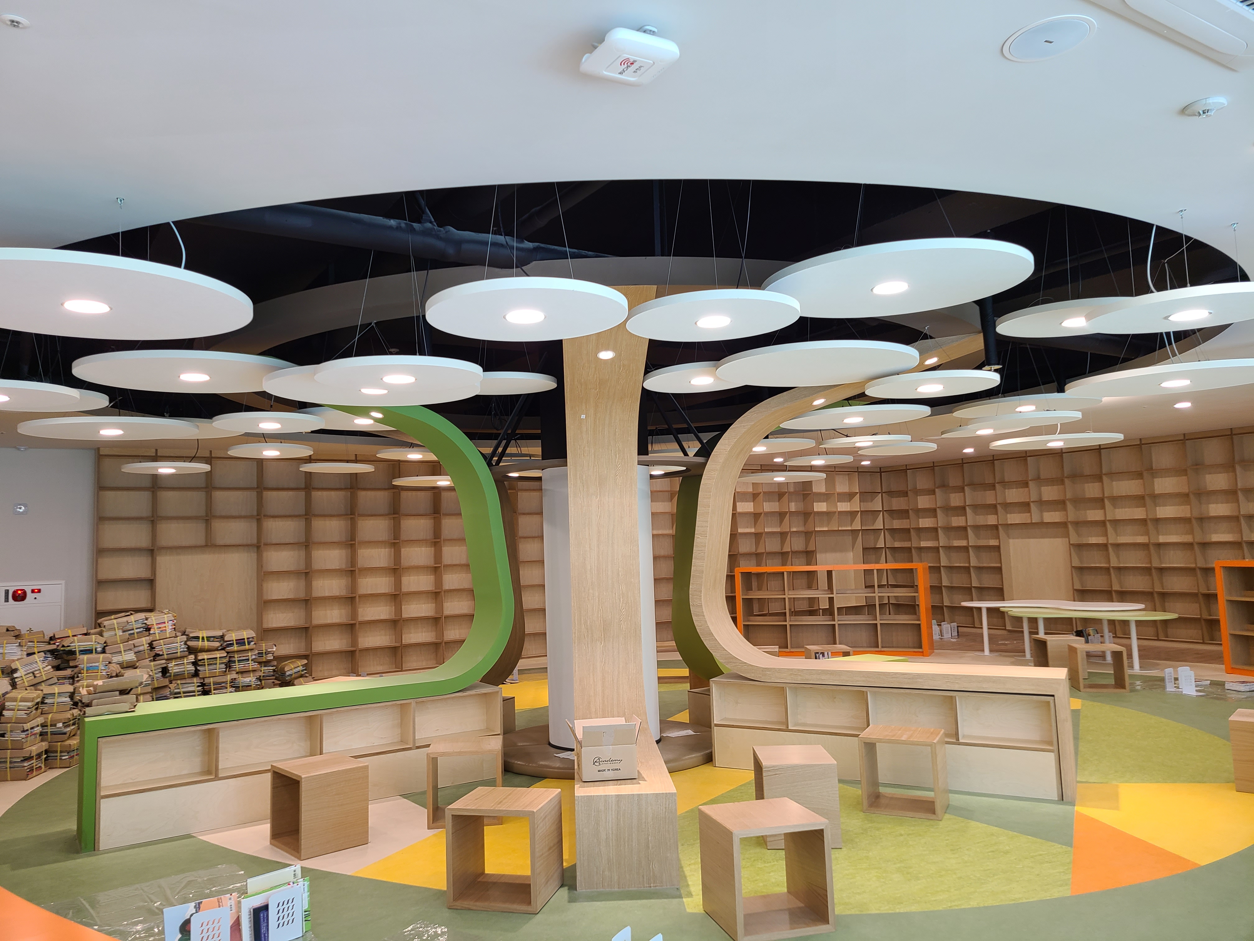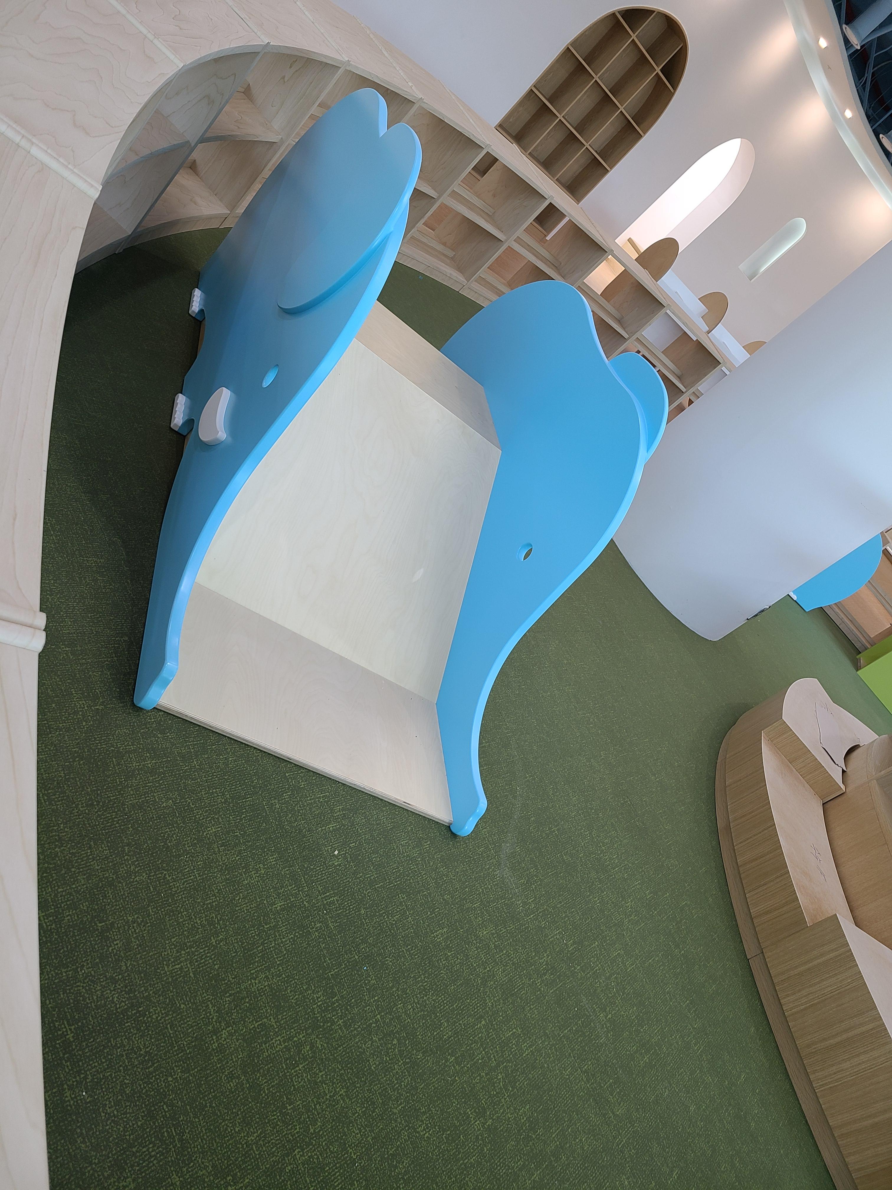 어린아이들이 뒹굴뒹굴 재미있는 독서를 할 수 있도록 난방장치가 되어있고, 귀여운 코끼리 미끄럼틀도 놓여있습니다.