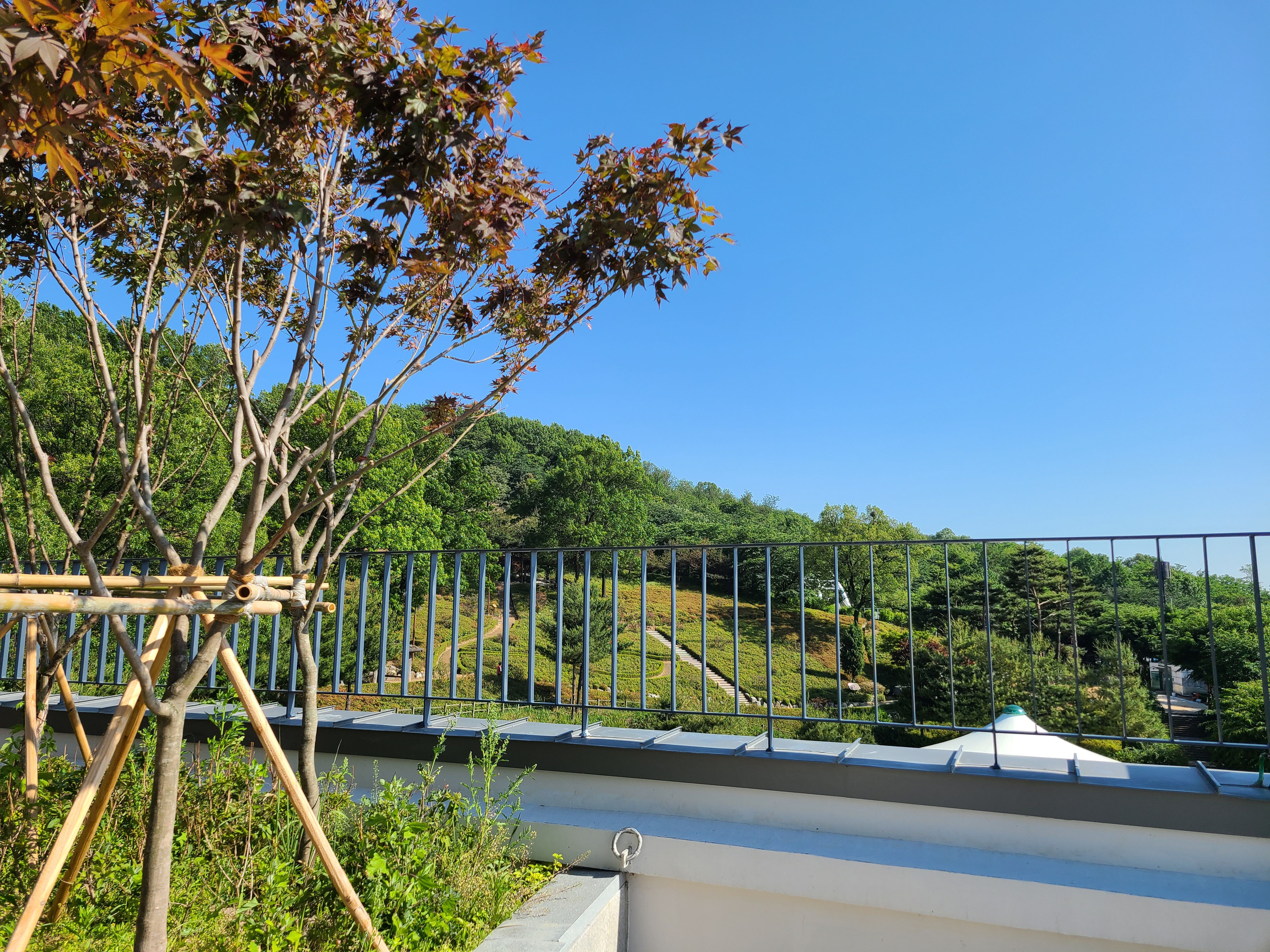 한쪽에는 식물도 심어져 있고, 선사유적공원이 보이는 작은 공연이 가능한 옥상입니다^^