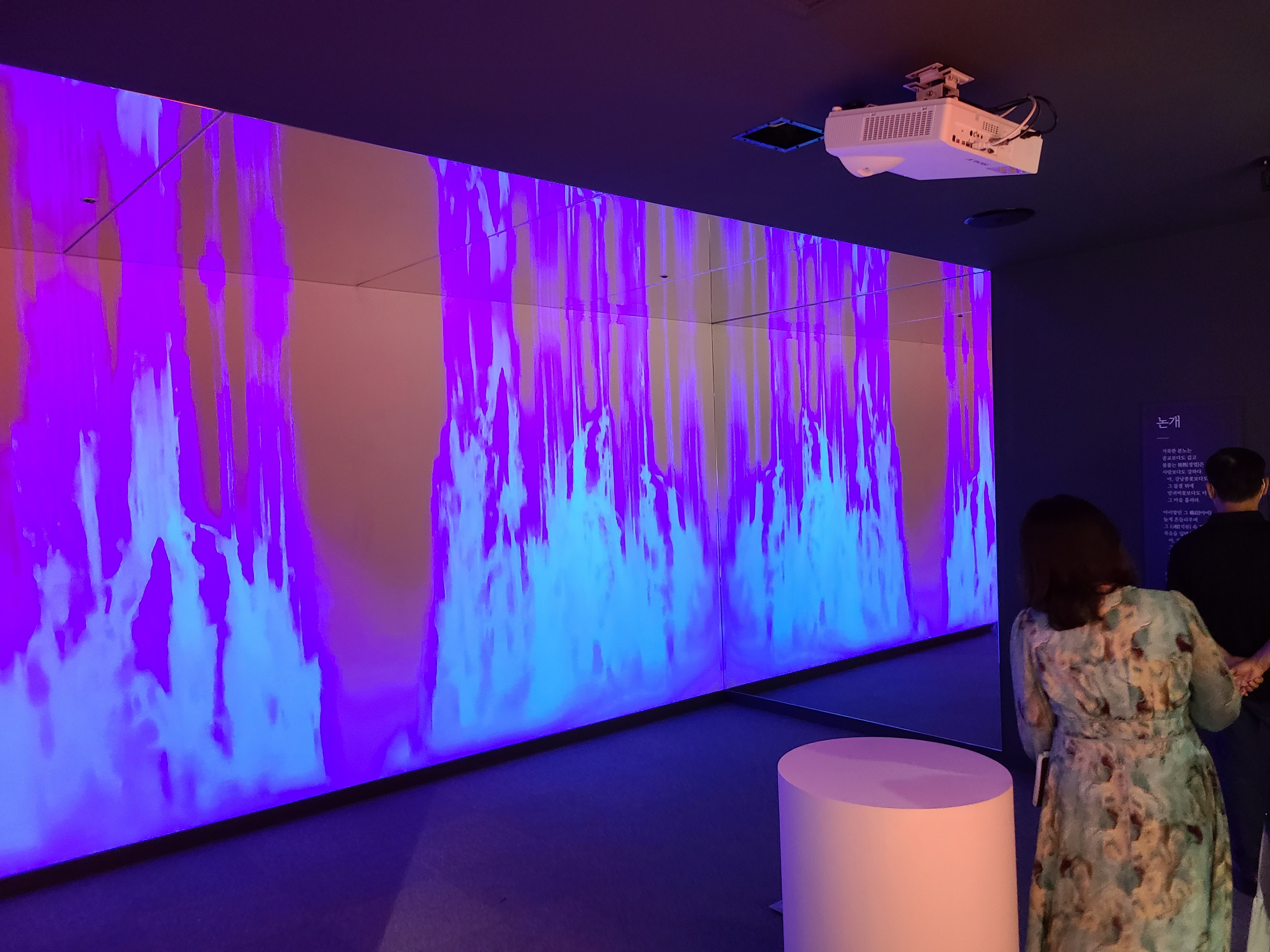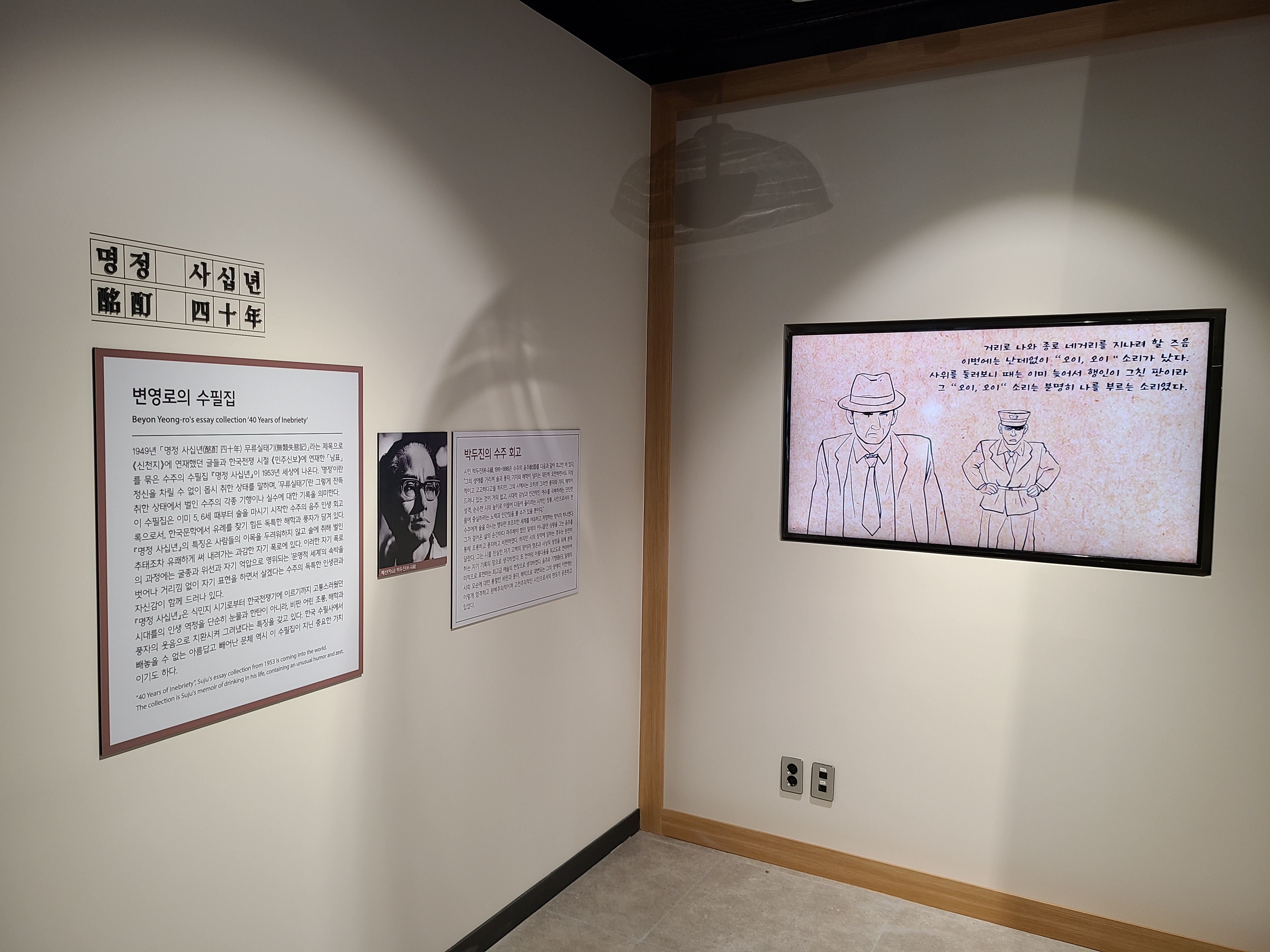영상매체를 활용하였고, 자석을 활용하여 누구나 한 줄 시를 지어 볼 수 있는 공간도 있습니다.