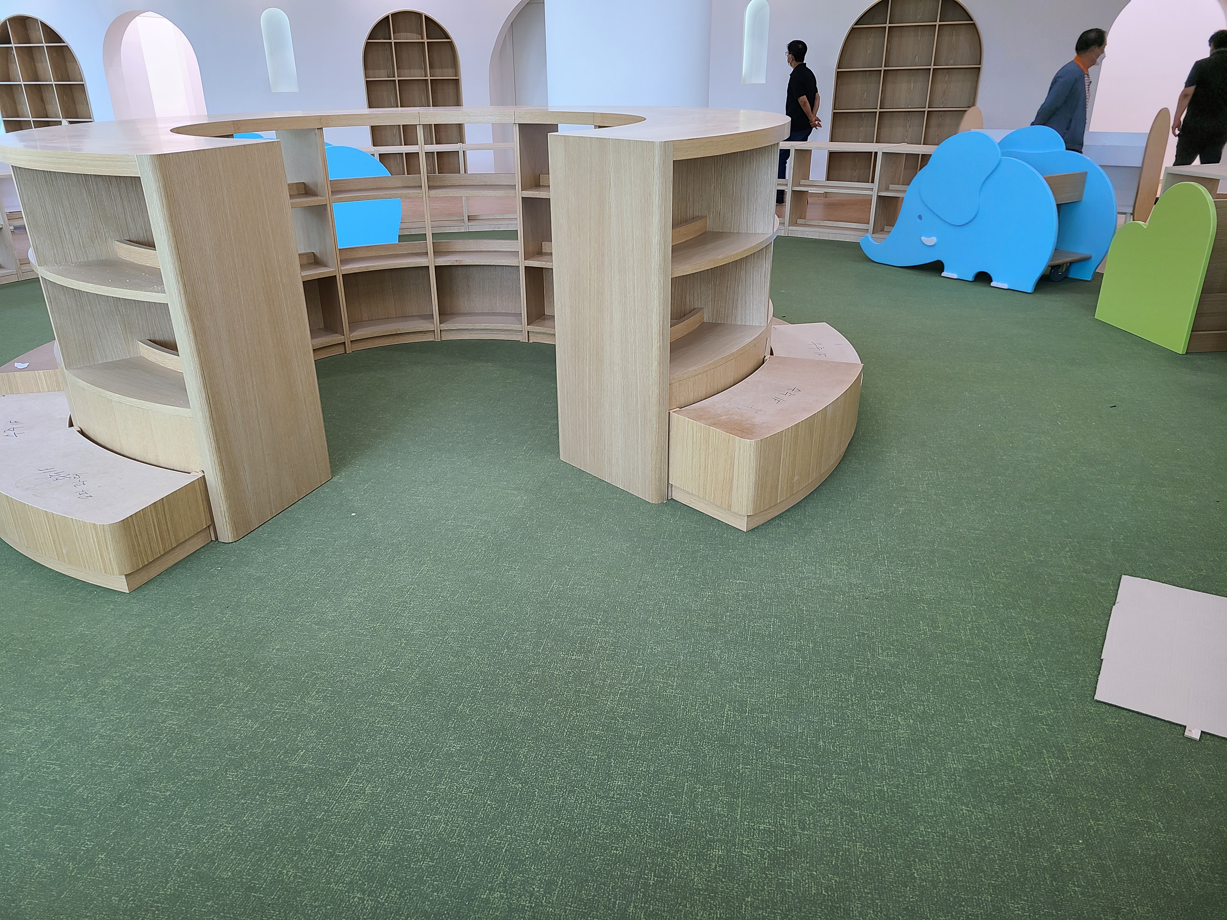 어린아이들이 뒹굴뒹굴 재미있는 독서를 할 수 있도록 난방장치가 되어있고, 귀여운 코끼리 미끄럼틀도 놓여있습니다.
