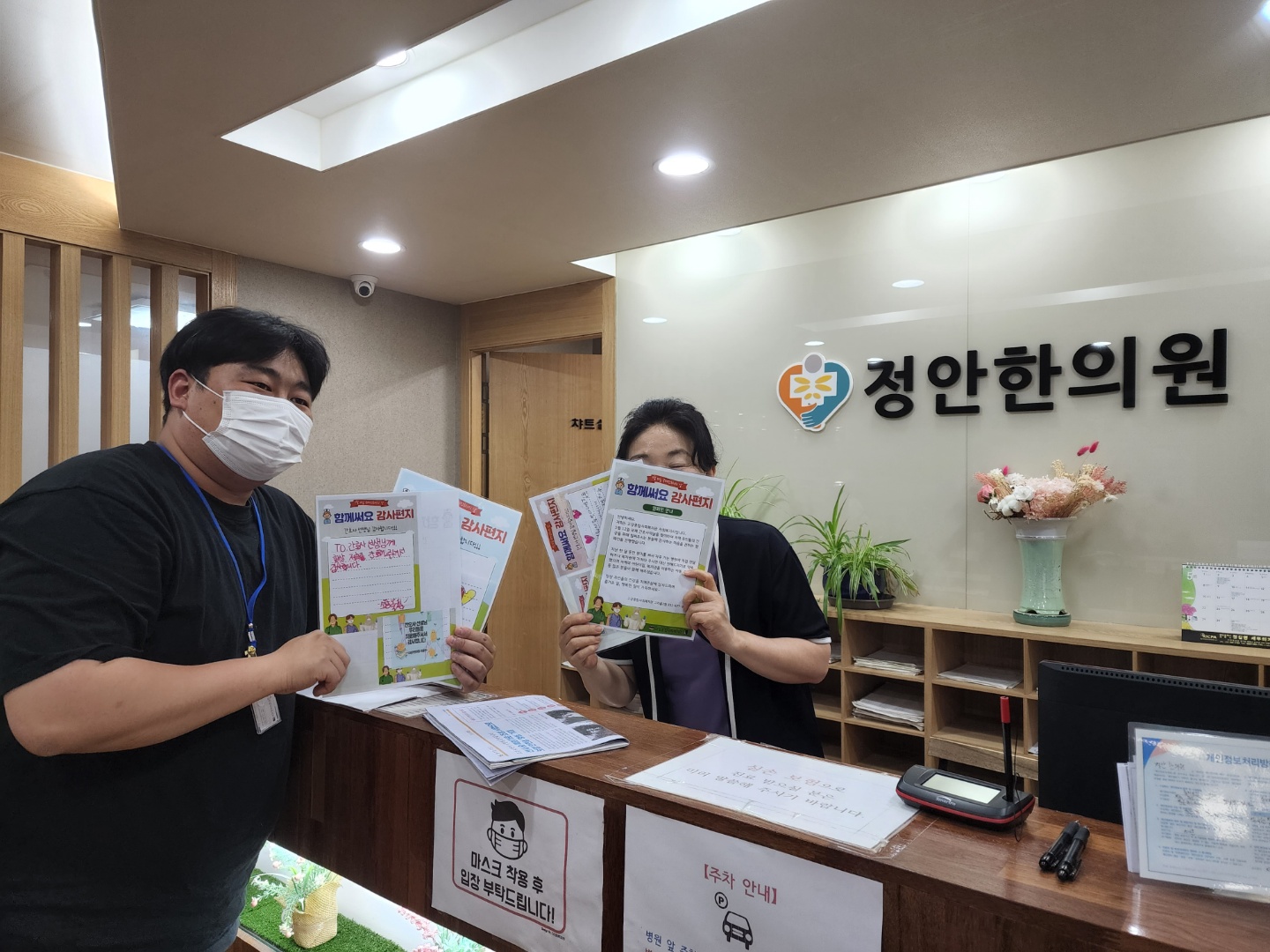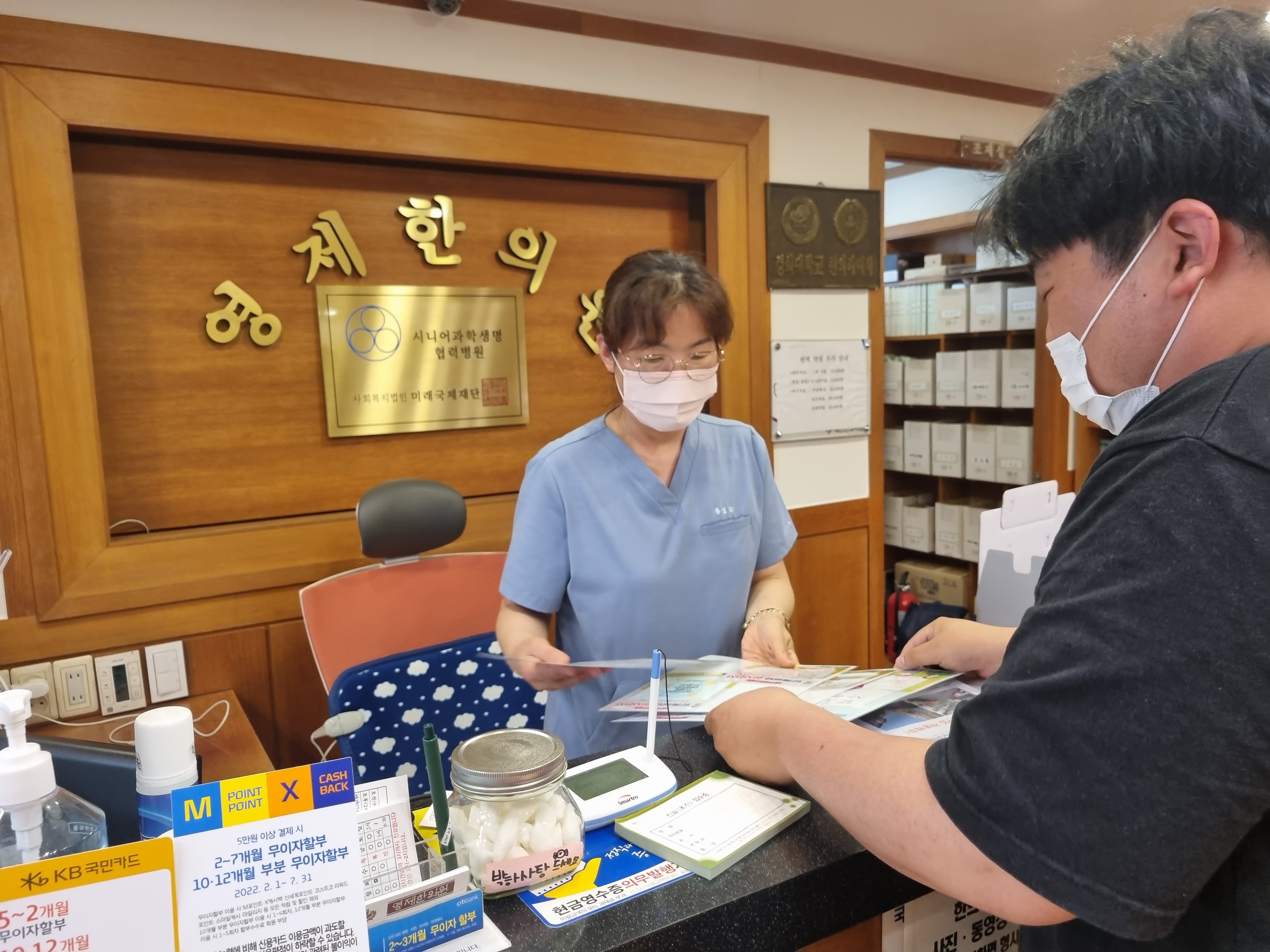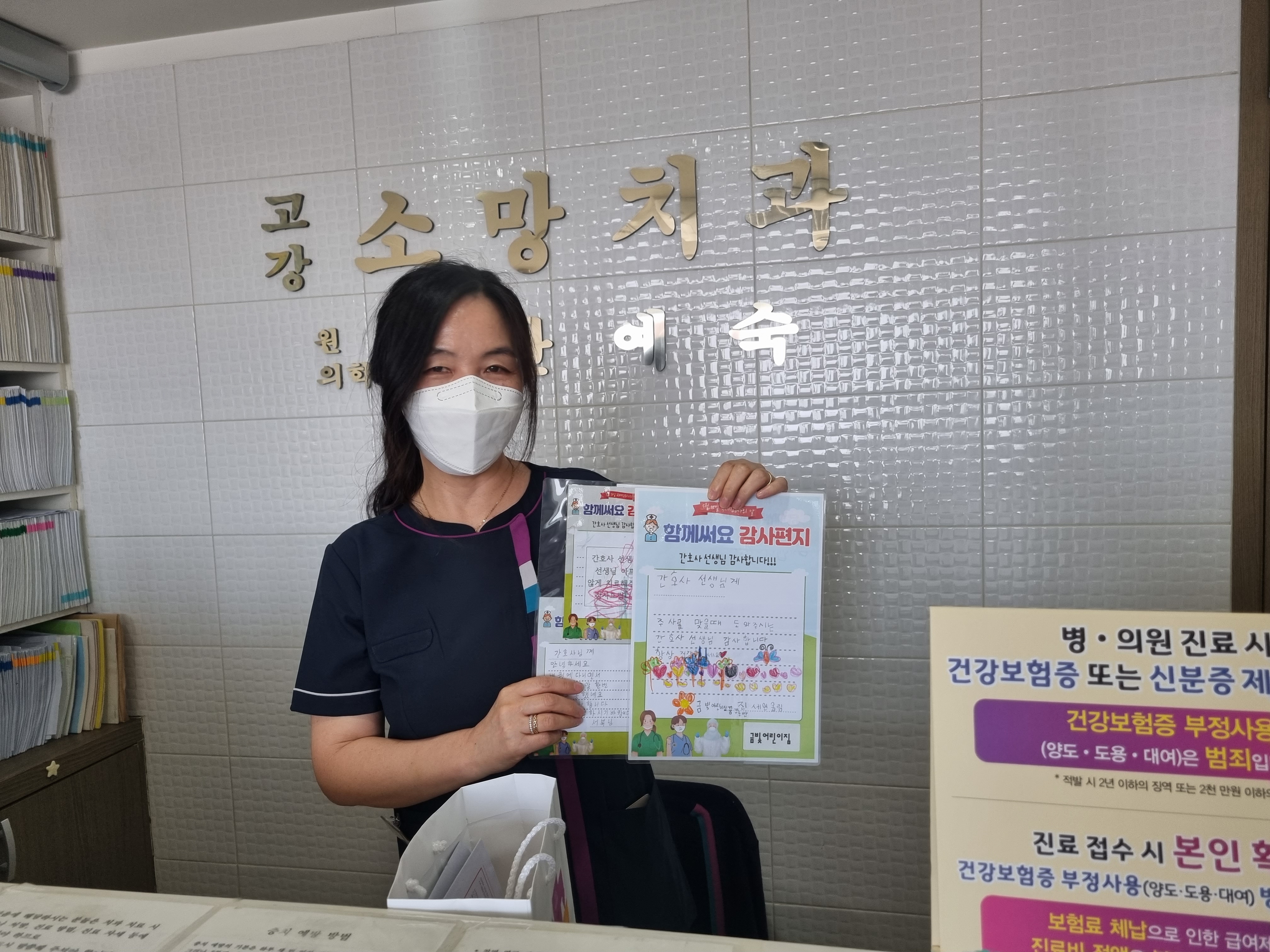 오정보건소부터 주신내과, 다솜병원, 영제한의원, 정안한의원, 소망치과, 정플란트치과 7곳에 전달했어요.