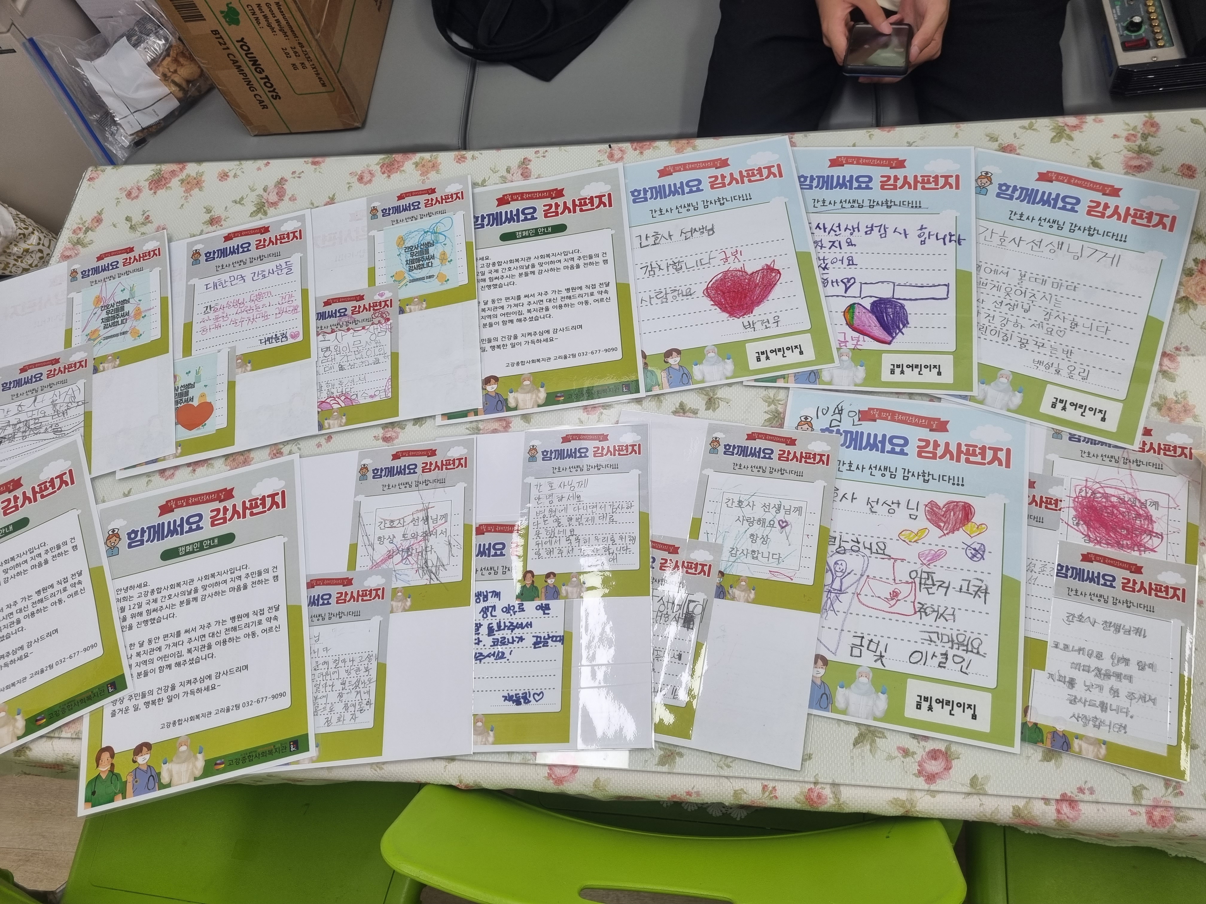 5월 12일 국제간호사의 날을 맞이하여 4월 말부터 5월까지 약 한 달간 감사편지 쓰기 캠페인을 진행했습니다.