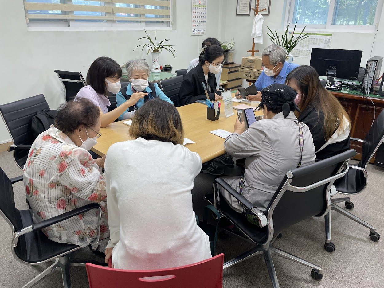 어르신들이 집으로 가신 뒤에 자원봉사자 분들과 이야기 나누며 어르신들이 일상생활에서 느끼는 불편함을 줄이기 위해 고강1동에 있는 키오스크 위치와 사용 방법을 정리하는 활동을 제안했습니다.
