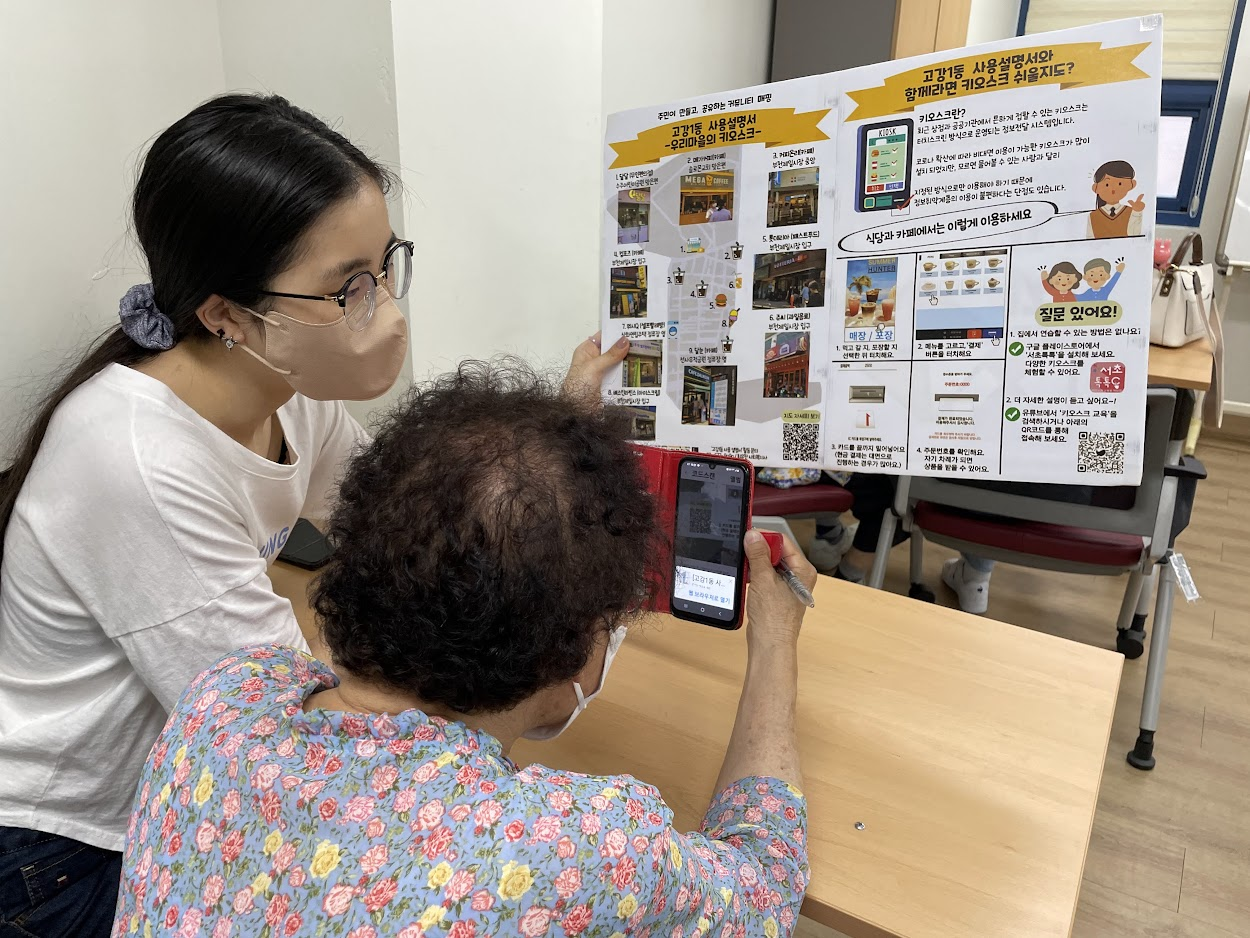 어르신들이 새로운 기술과, 변화하는 사회에서 소외되지 않고, 덜 불편하실 수 있길 바라며 키오스크 사용 방법을 안내하고, 더 자세히 배울 수 있는 체험 앱과 동영상을 소개했습니다.
