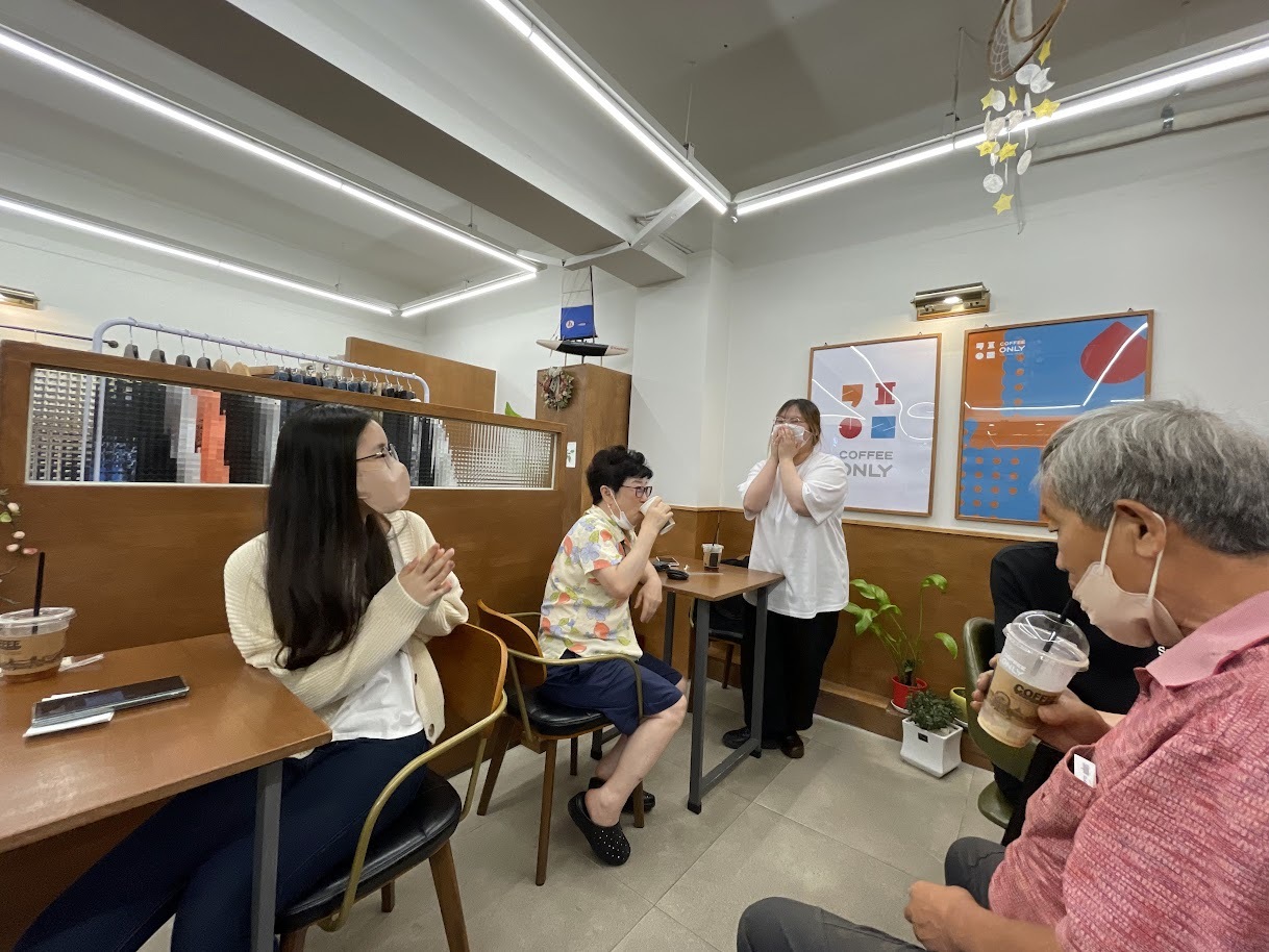 이야기 나누는 사이 모든 어르신이 음료 주문에 성공했습니다. 카페에 들어가 한 숨 돌리며 오늘의 소감을 공유하는 시간을 가졌습니다.