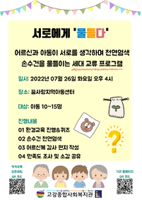세대교류 프로그램은 어떤 방법으로 진행할지 고민해 보다가 7월이 자연과 환경보호의 달인 것을 알게 되었는데요.