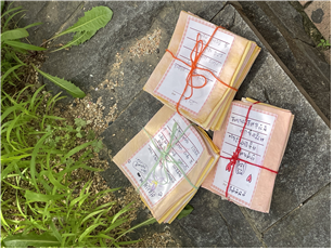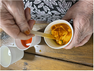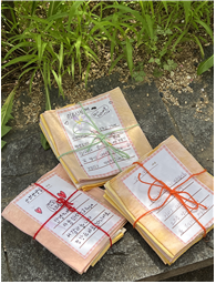 먼저 프로그램 진행 전 프로그램에 필요한 손수건과 천연 염료를 아동 수에 맞게 준비하고 있습니다.