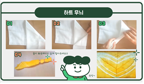 손수건 천연 염색 활동을 시작하기 전, 자연과 환경 보호의 달인 7월에 맞게 환경 교육을 진행하고 관련 퀴즈도 맞히는 활동을 하였습니다.