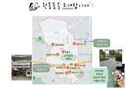 마을 탐방을 하면서 저희가 방문한 가게와 기관을 표시하고 마을 주민분들께 추천하고 싶은 둘레길과 예쁜 경치가 보이는 장소 등을 표시한 마을 지도도 함께 만들었습니다.