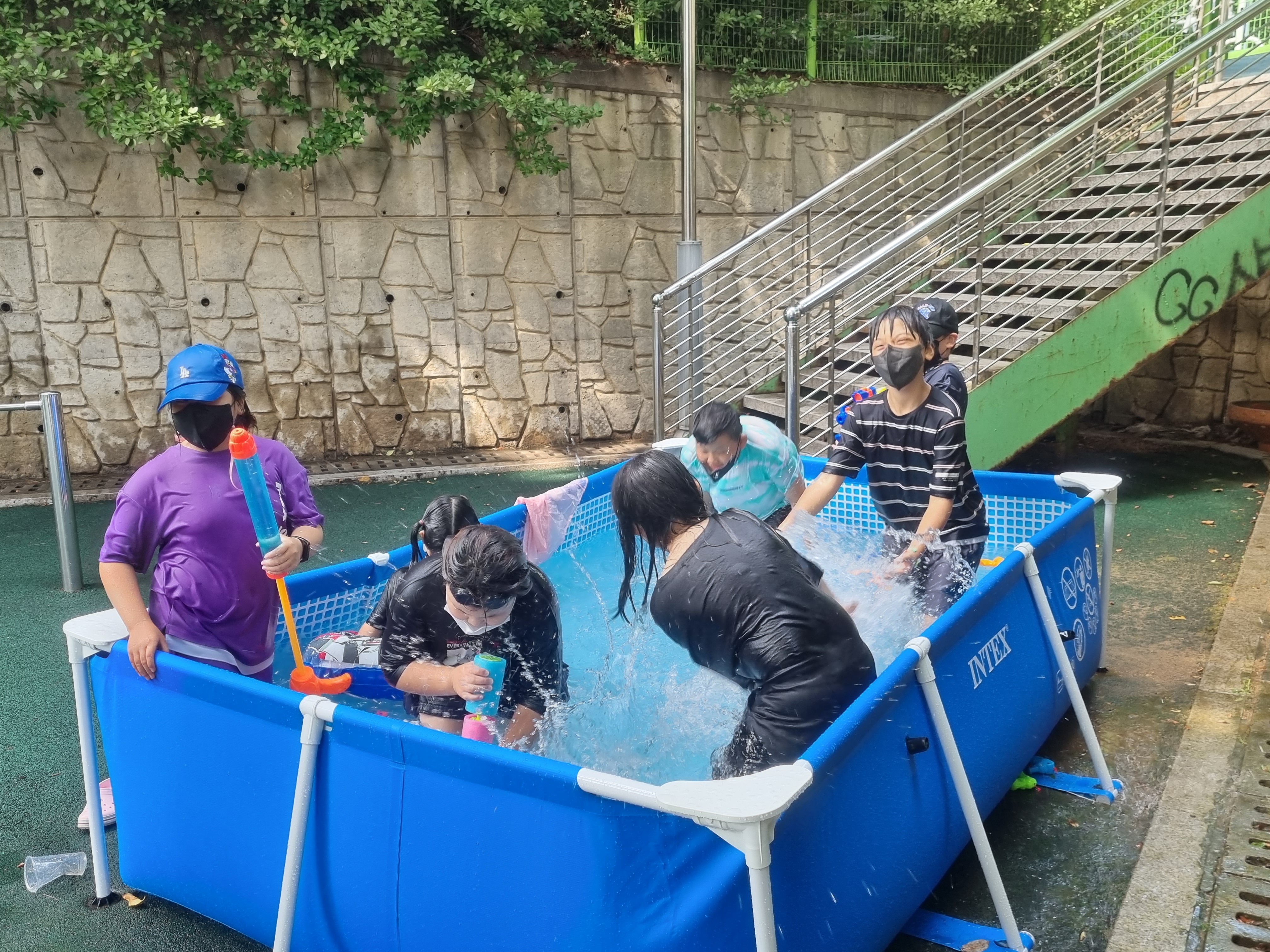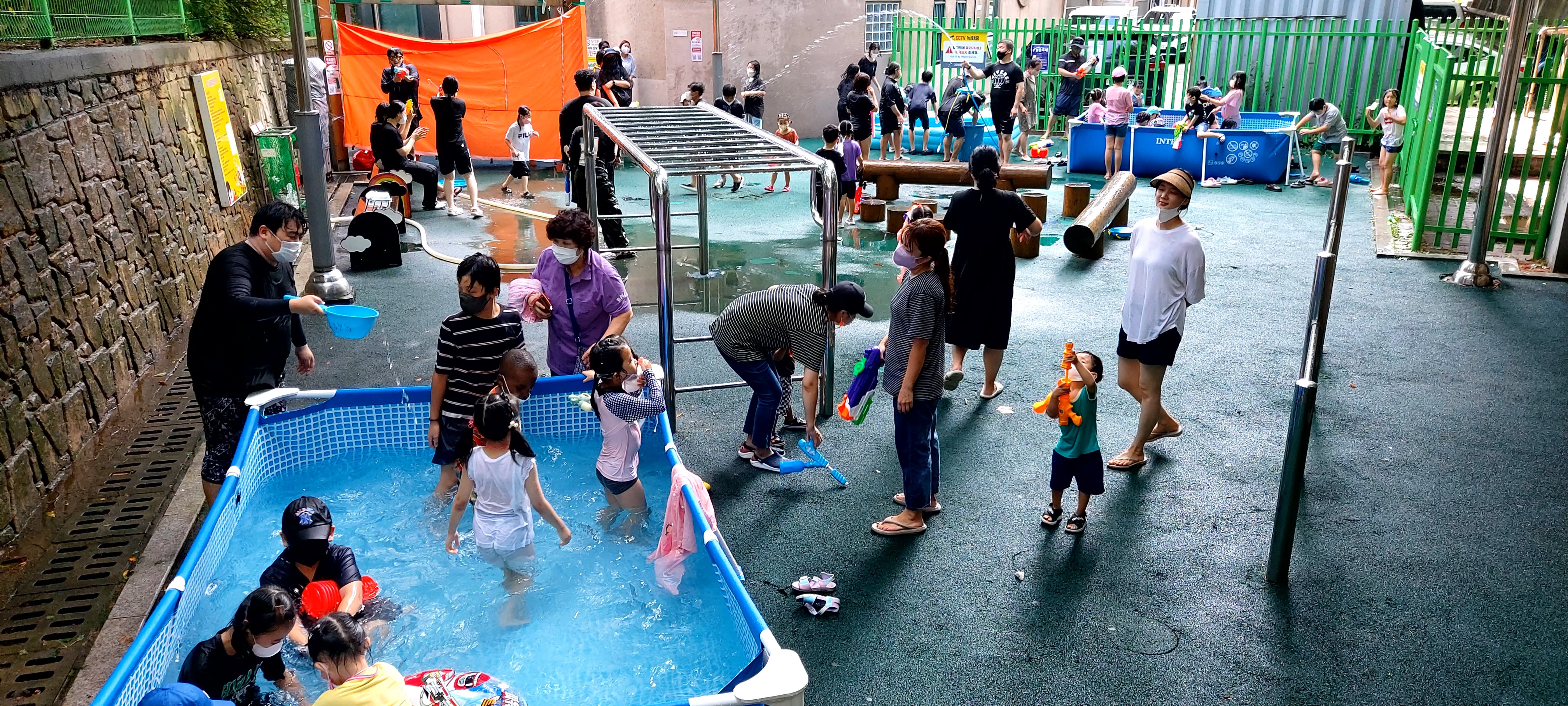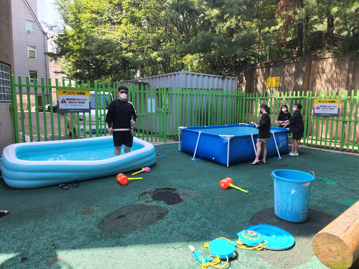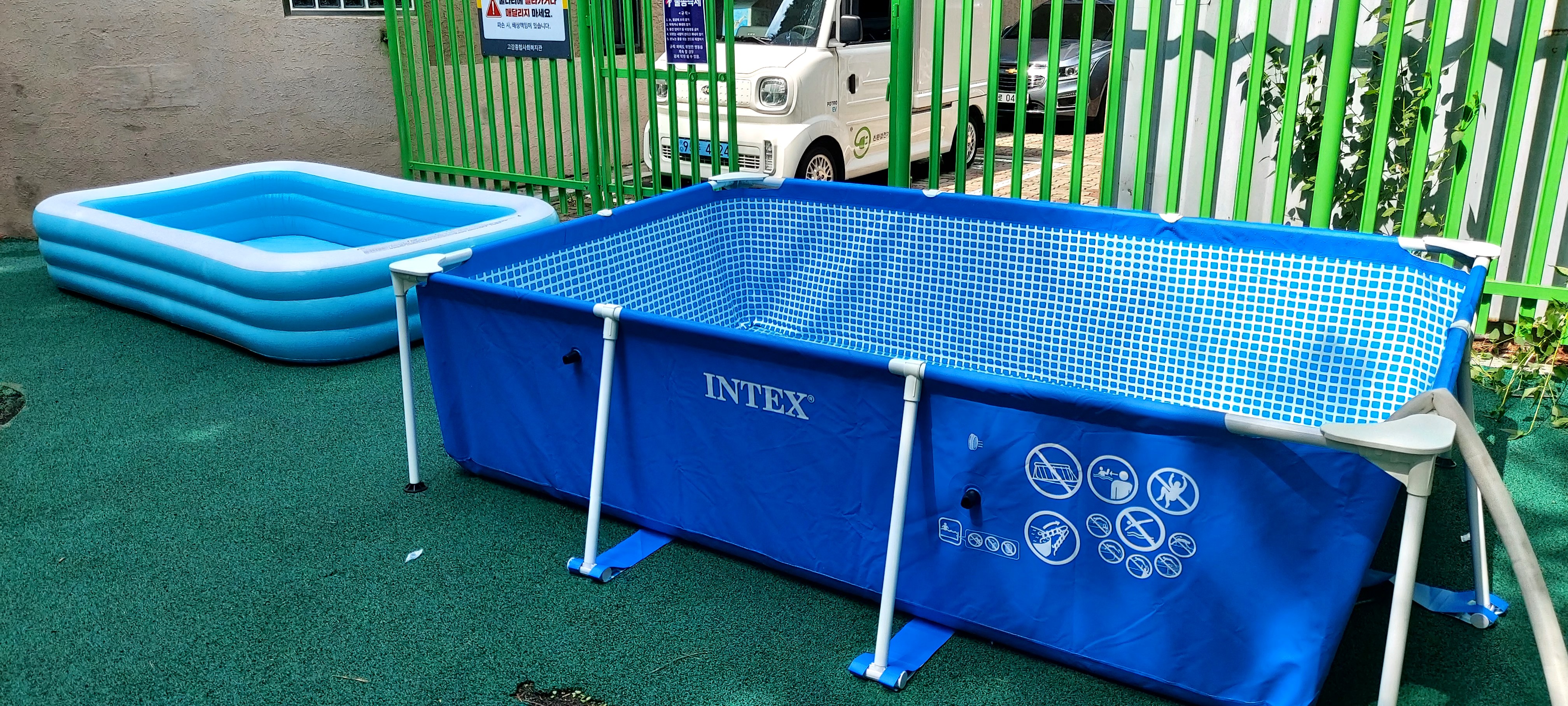대형 수영장을 2개, 어린이집에서 빌린 튜브형 수영장까지