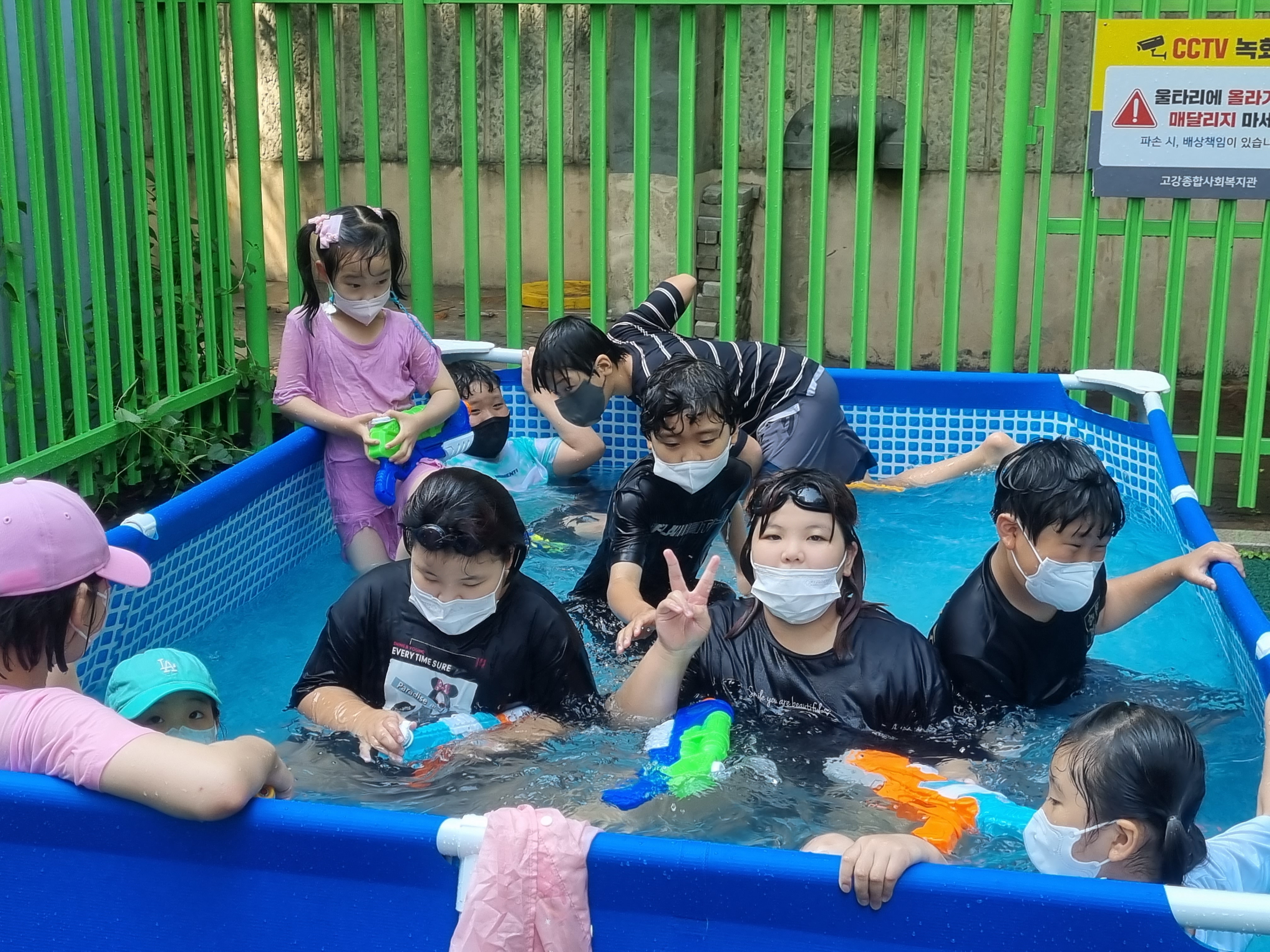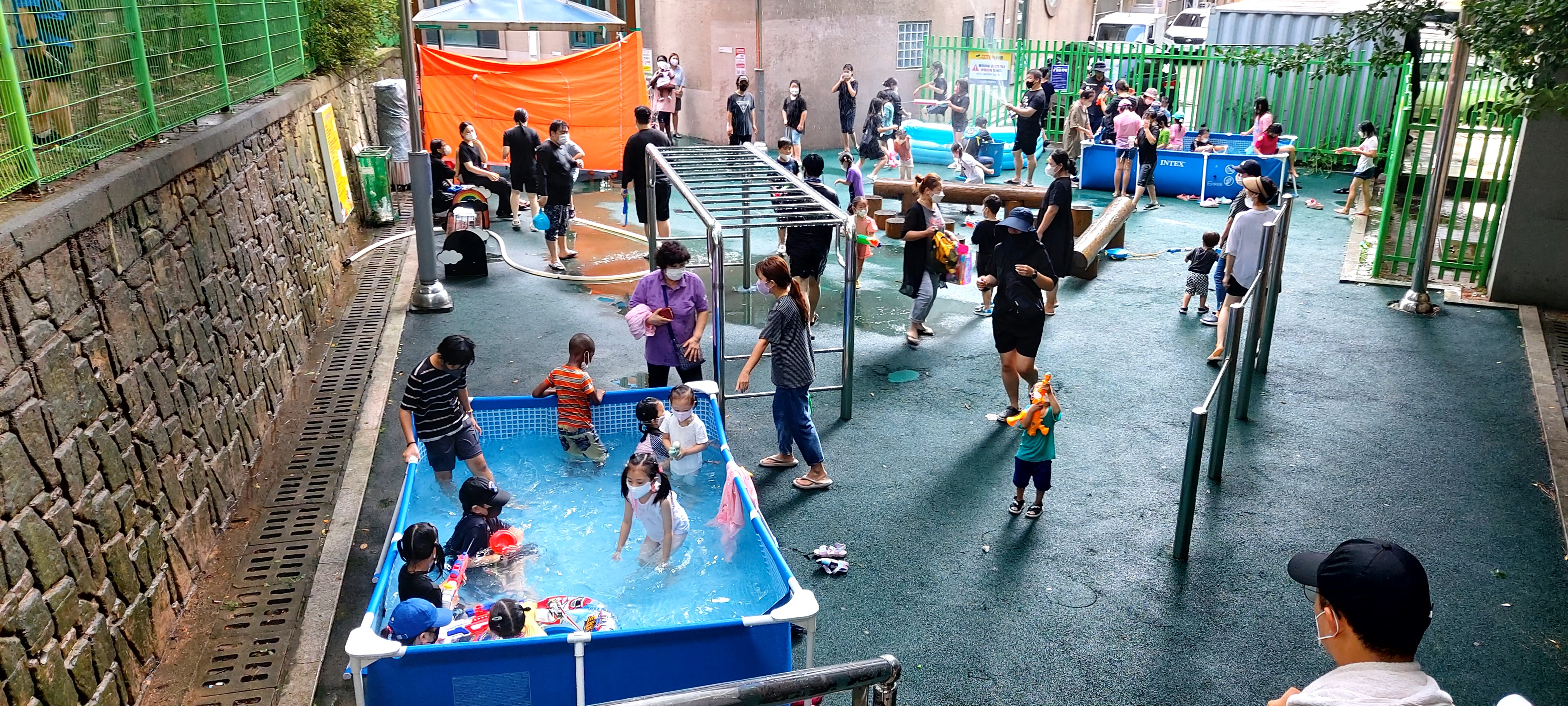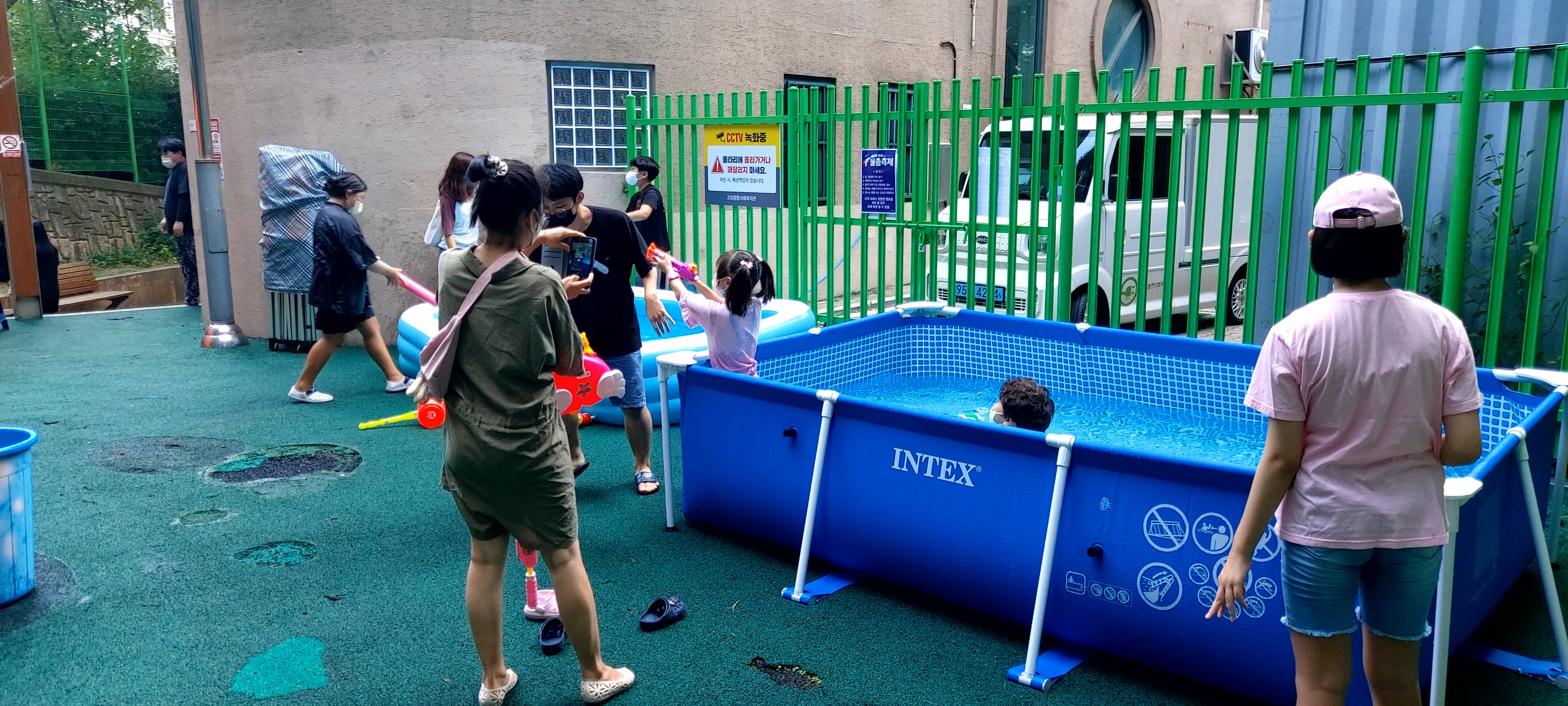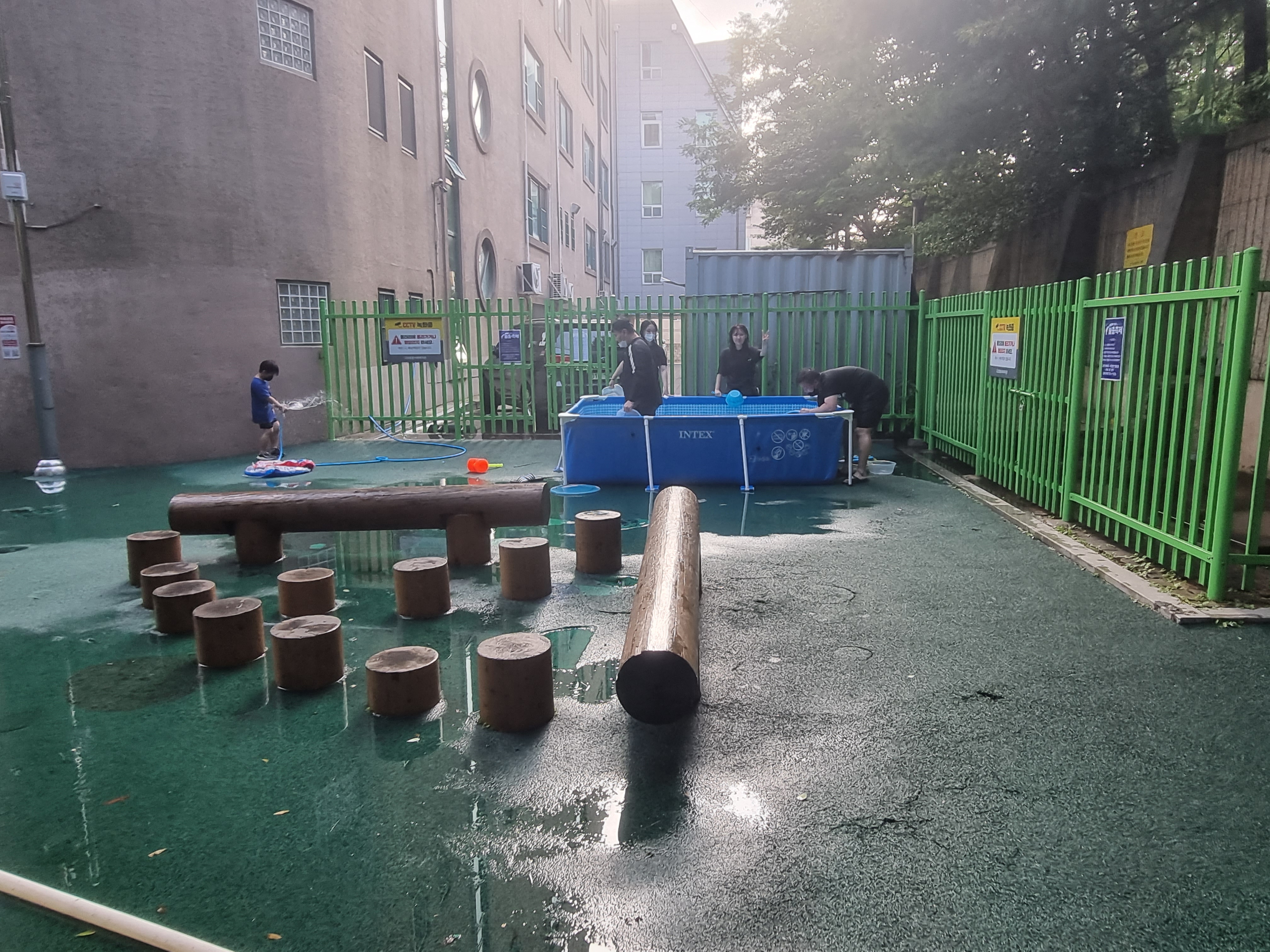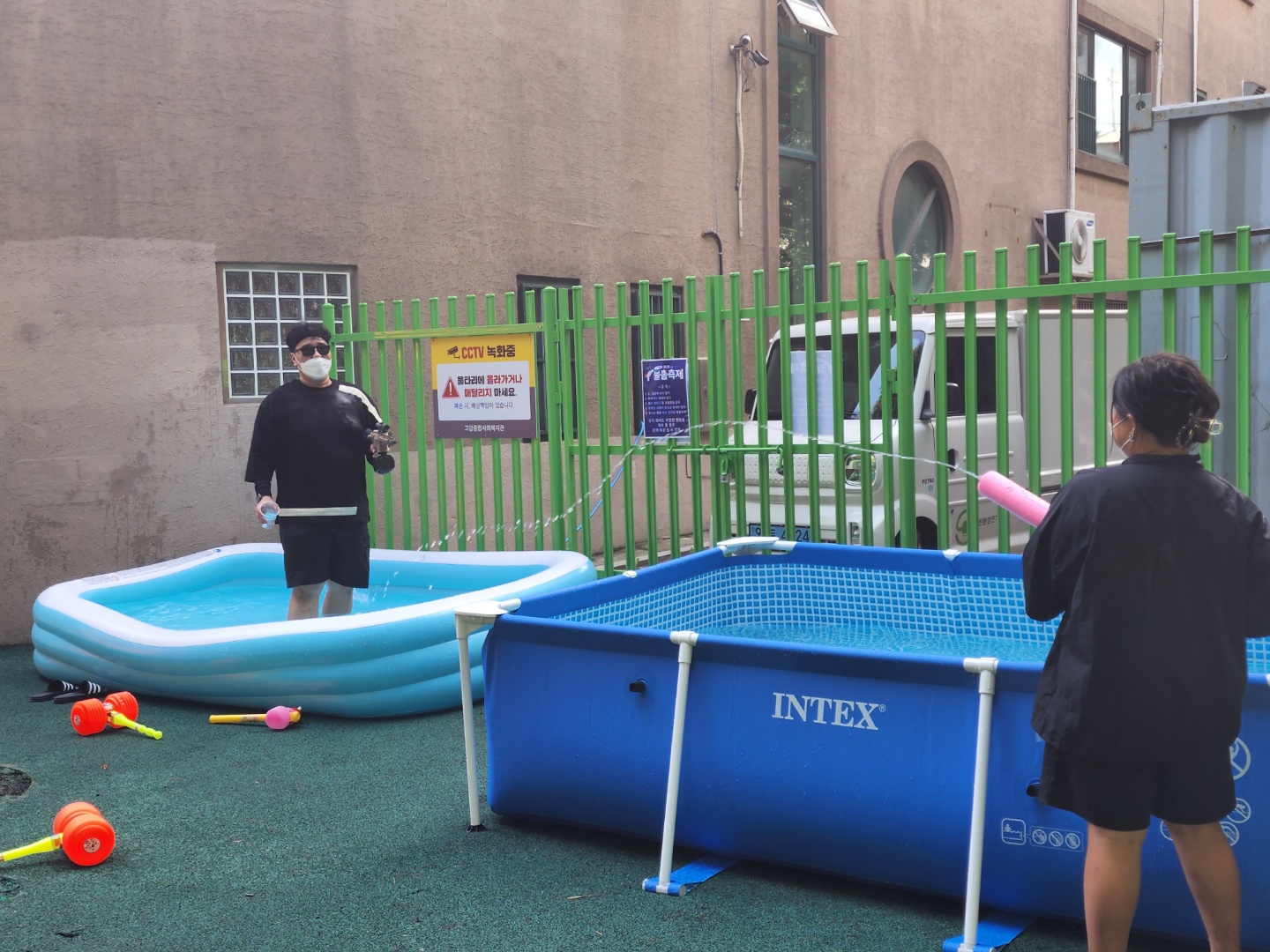 대형 수영장을 2개, 어린이집에서 빌린 튜브형 수영장까지