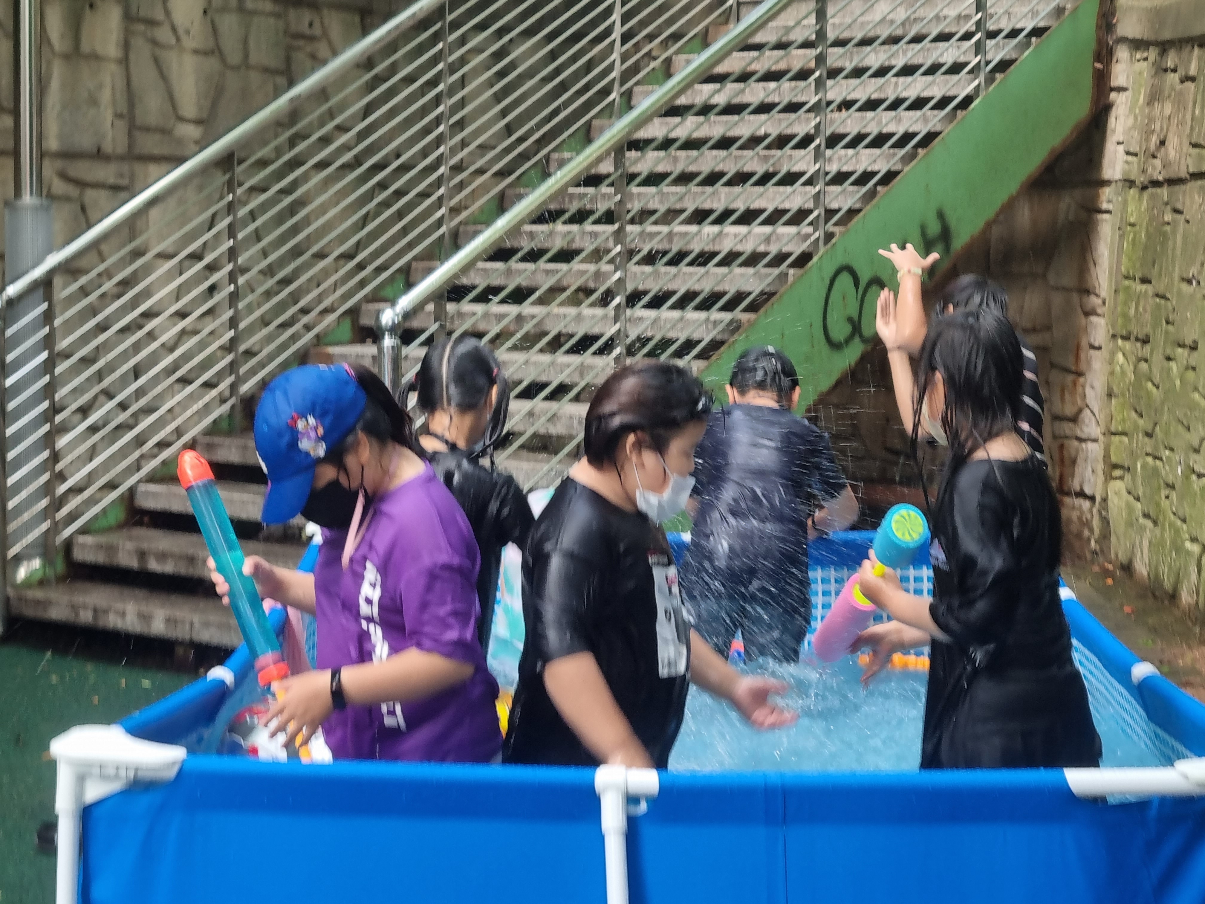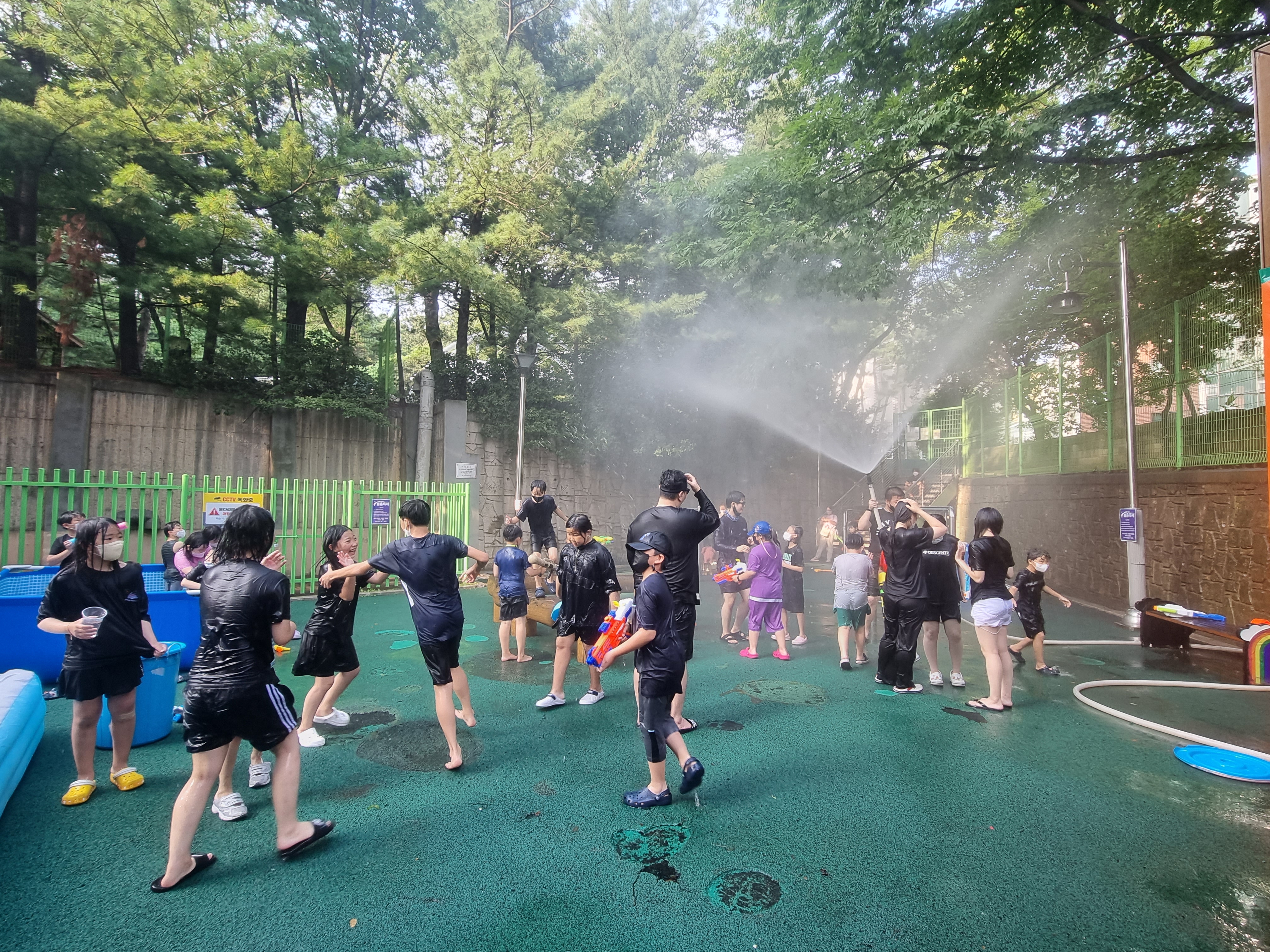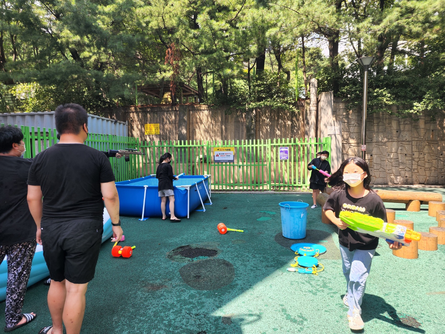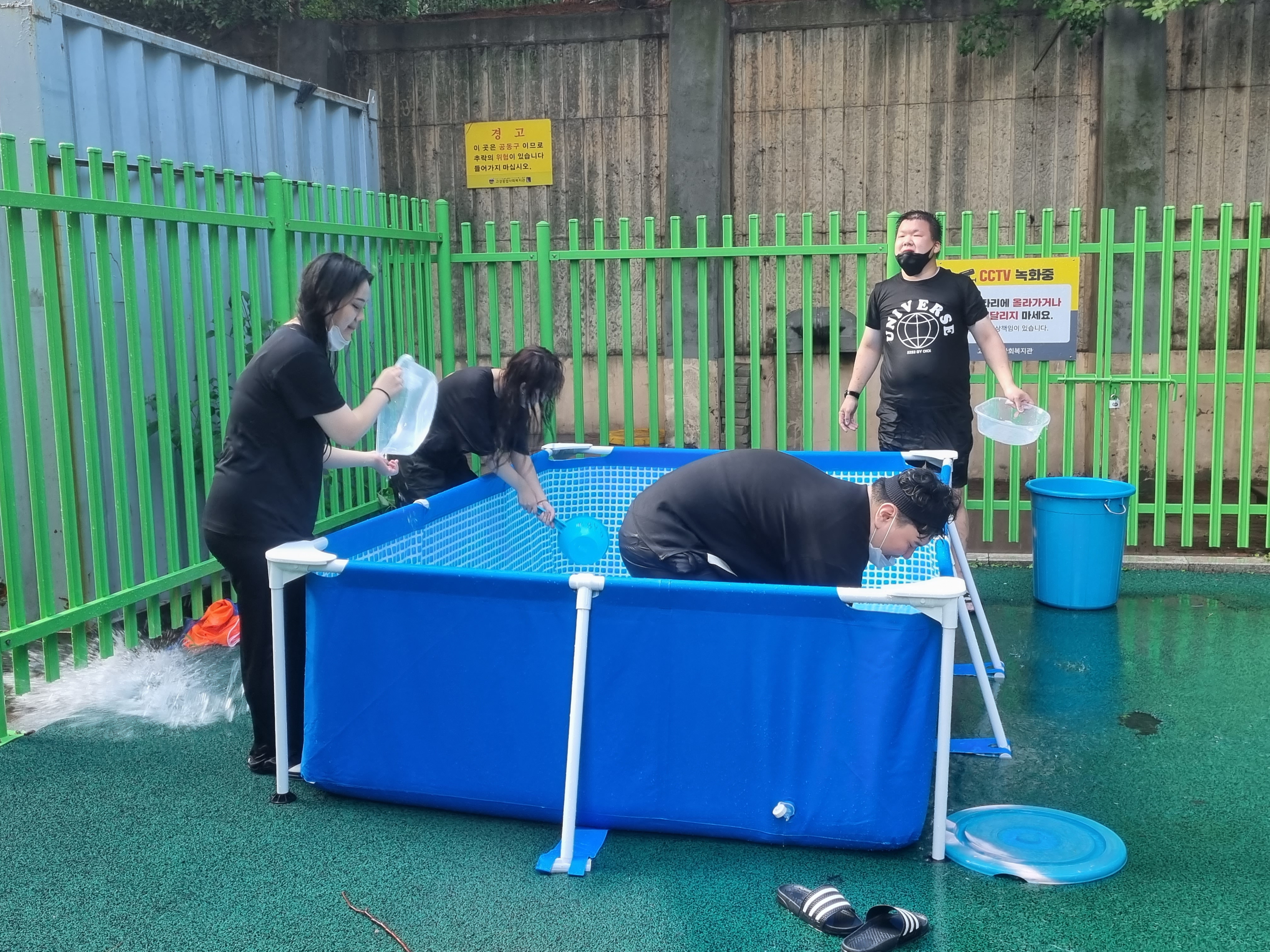 대형 수영장을 2개, 어린이집에서 빌린 튜브형 수영장까지
