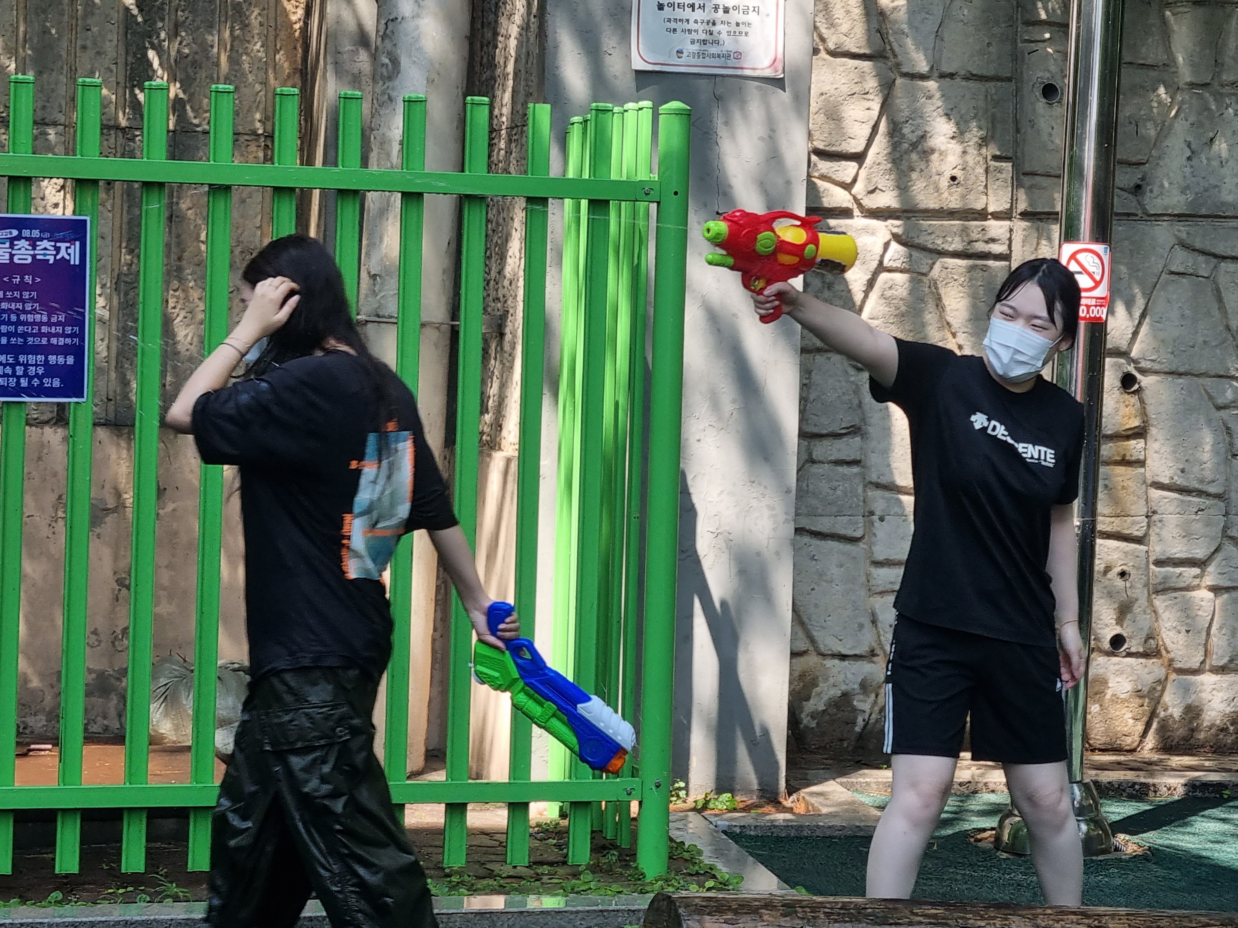 씩씩하게 물총들고 장엄하게 등장하는 아이 등