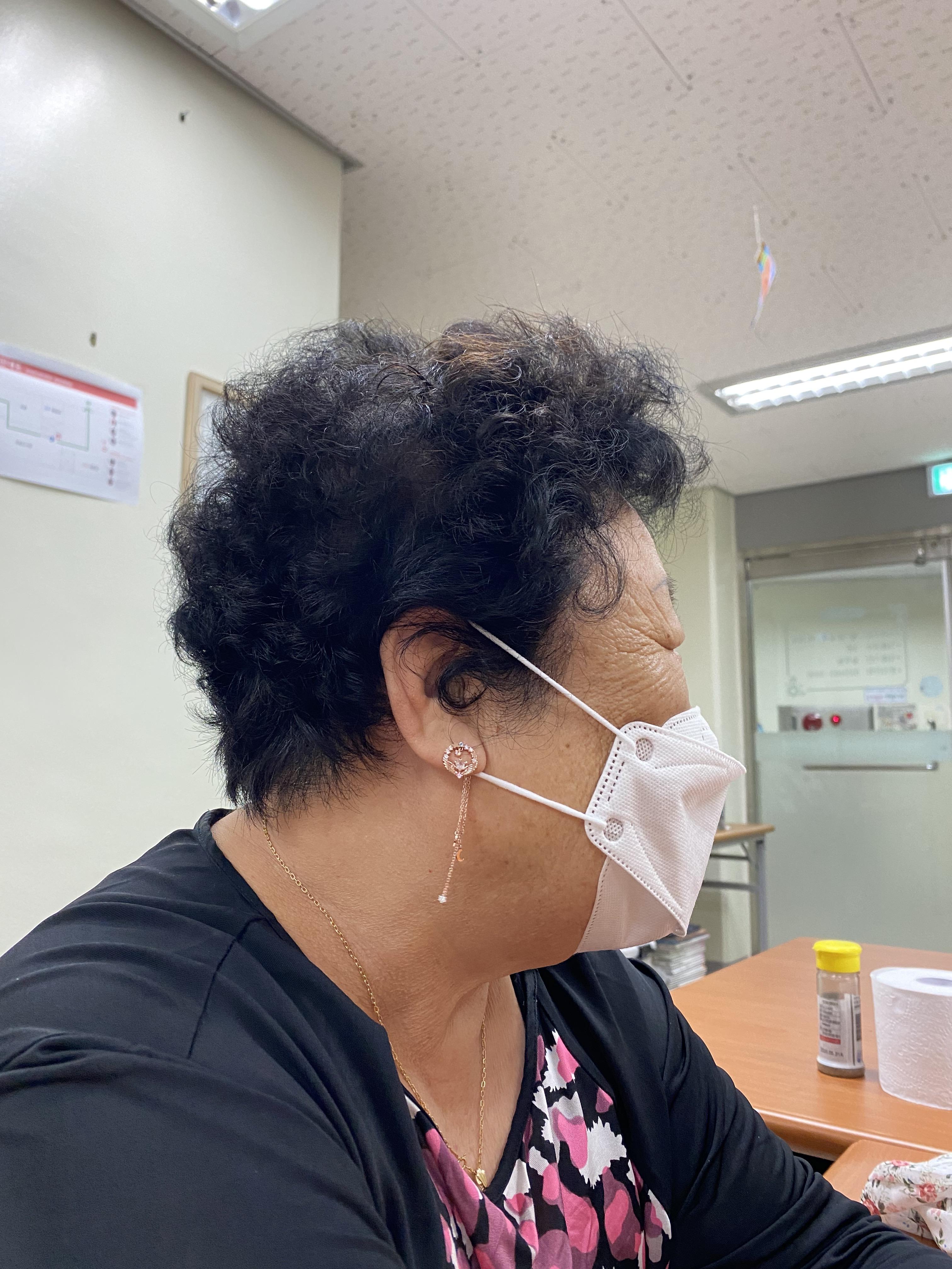귀걸이 안 하신지 오래되셔서 제가 직접 끼워드리기도 하고, 스스로 뚫어가며(?) 끼우시기도 하셨습니다.