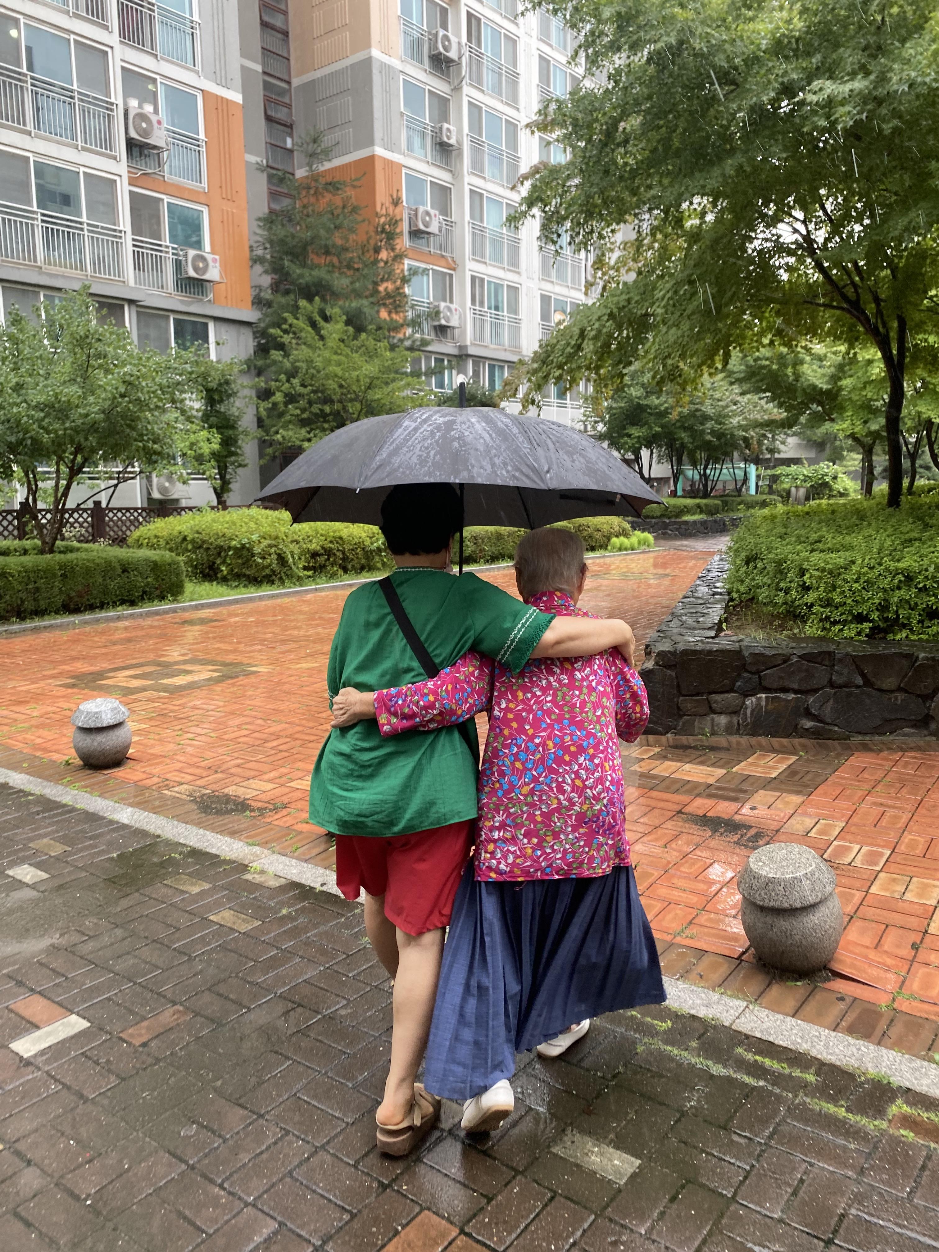 비 오는 날에도 신이 나시는 봉사단분들. 에너지 있게 해 주셔서 저도 재미있게 어르신들 만나고 함께 식사했습니다.