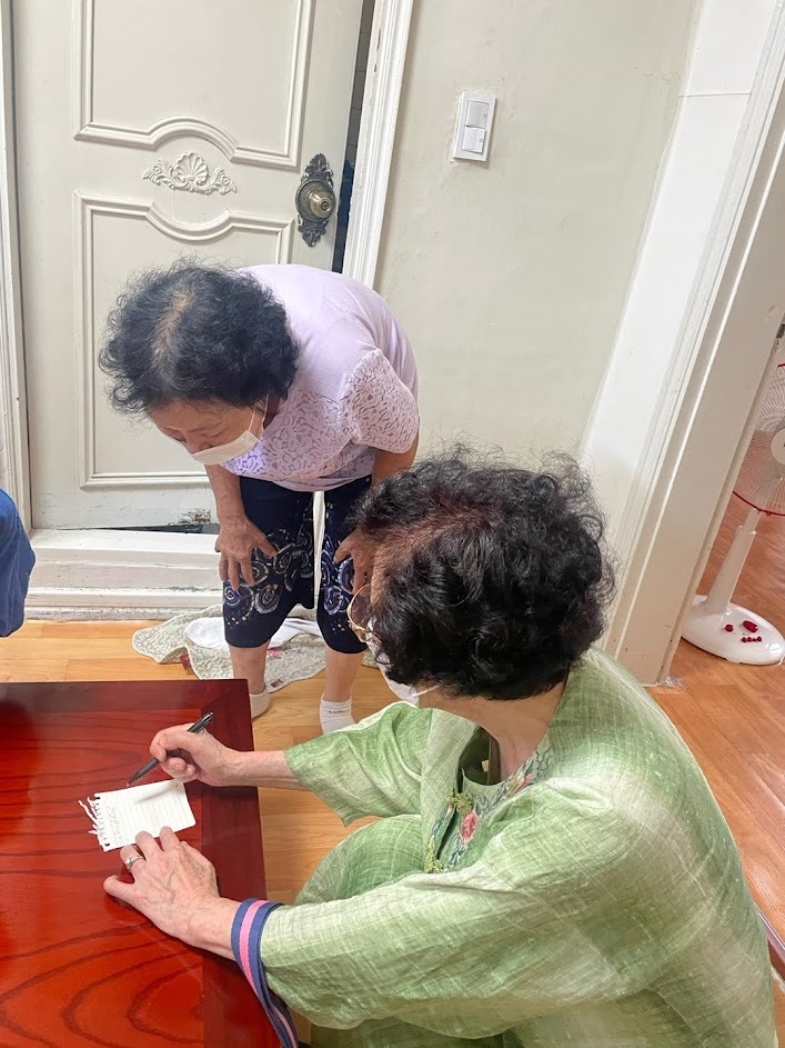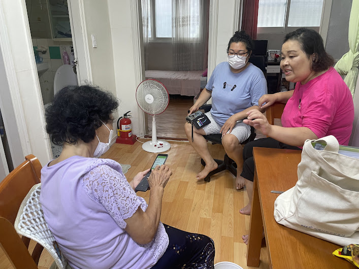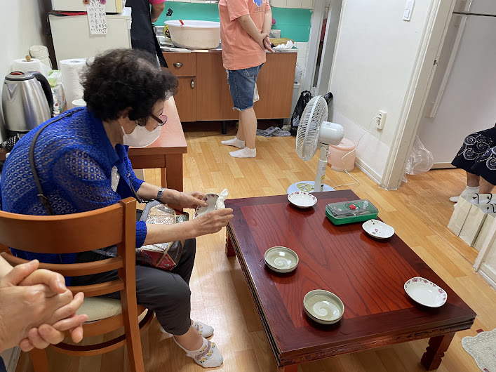 어르신 댁에 들어가니 손님 맞을 준비로 바쁘십니다. 바닥 먼지를 훔치고, 싱크대까지 구석구석 살피는 어르신. 어르신께 인사드린 뒤 어르신 댁에서 이웃들과 만날 수 있게 허락해 주셔서 감사하다고 말씀드렸습니다.