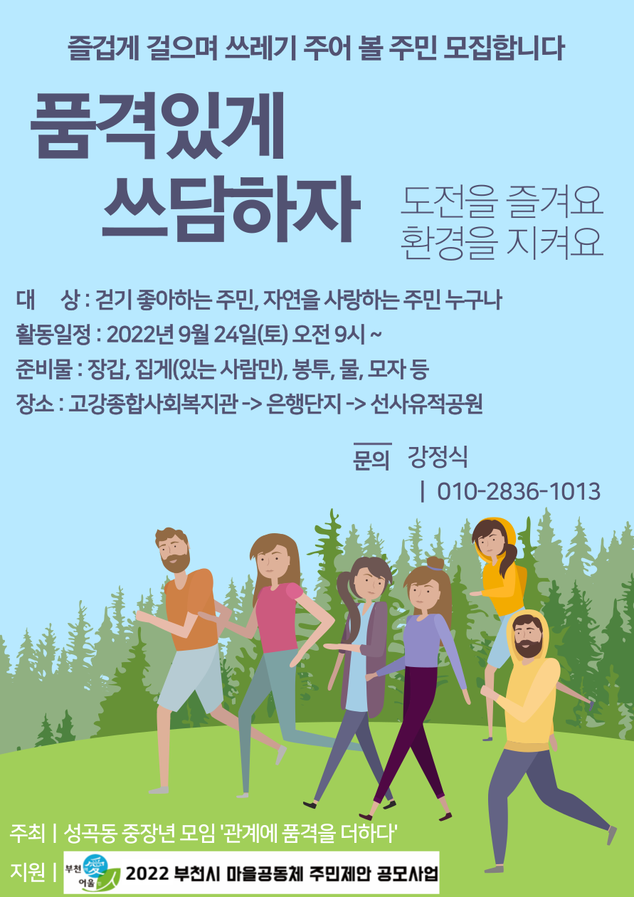 7월부터 매월 1회 고강동을 돌며 쓰담걷기를 하고 있습니다.