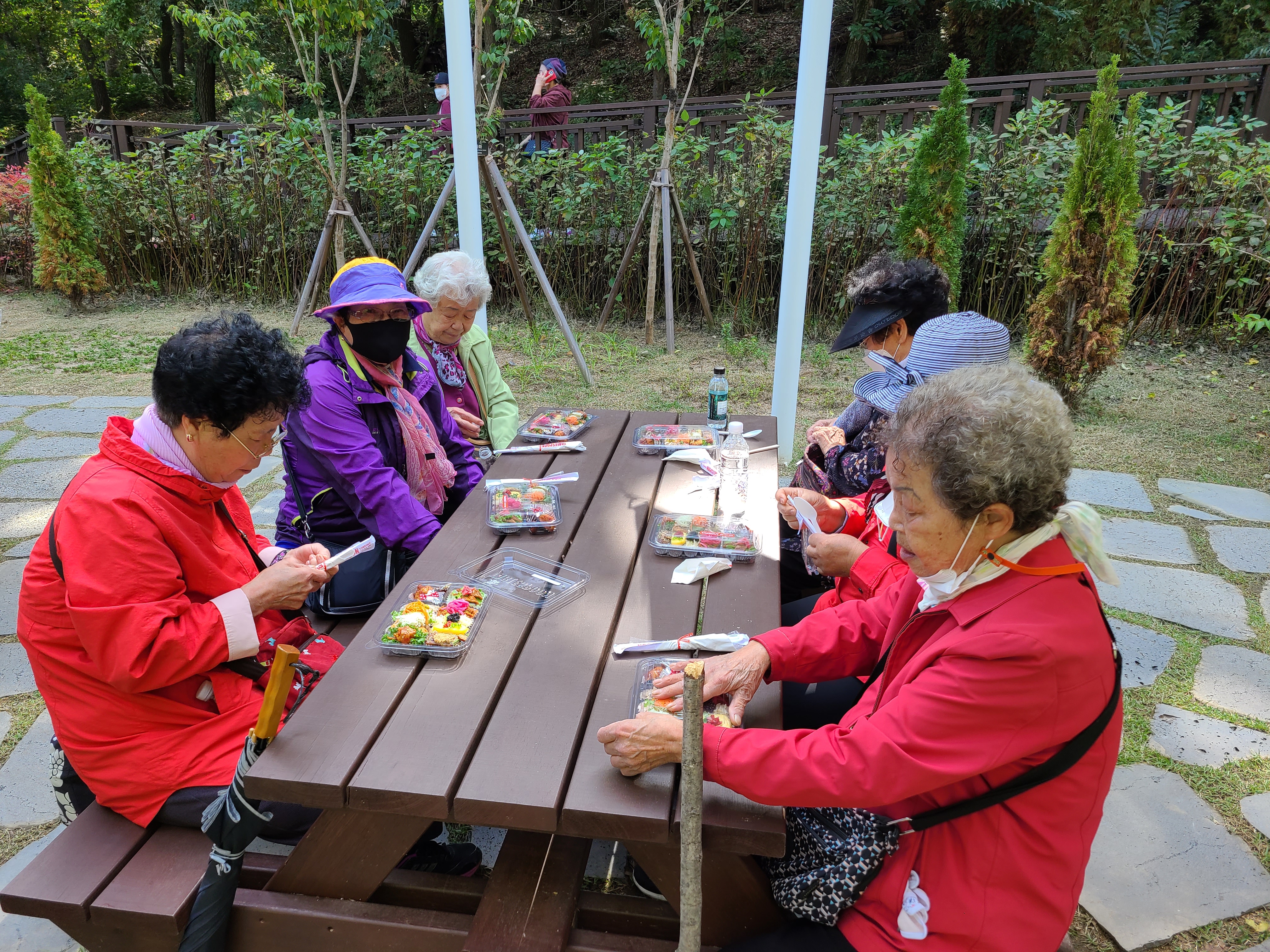 행복더하기 봉사자님들과 함께 이야기도 하고, 어르신들끼리 담소도 나누며 청명한 가을하늘 아래 무사히 나들이를 마쳤습니다.