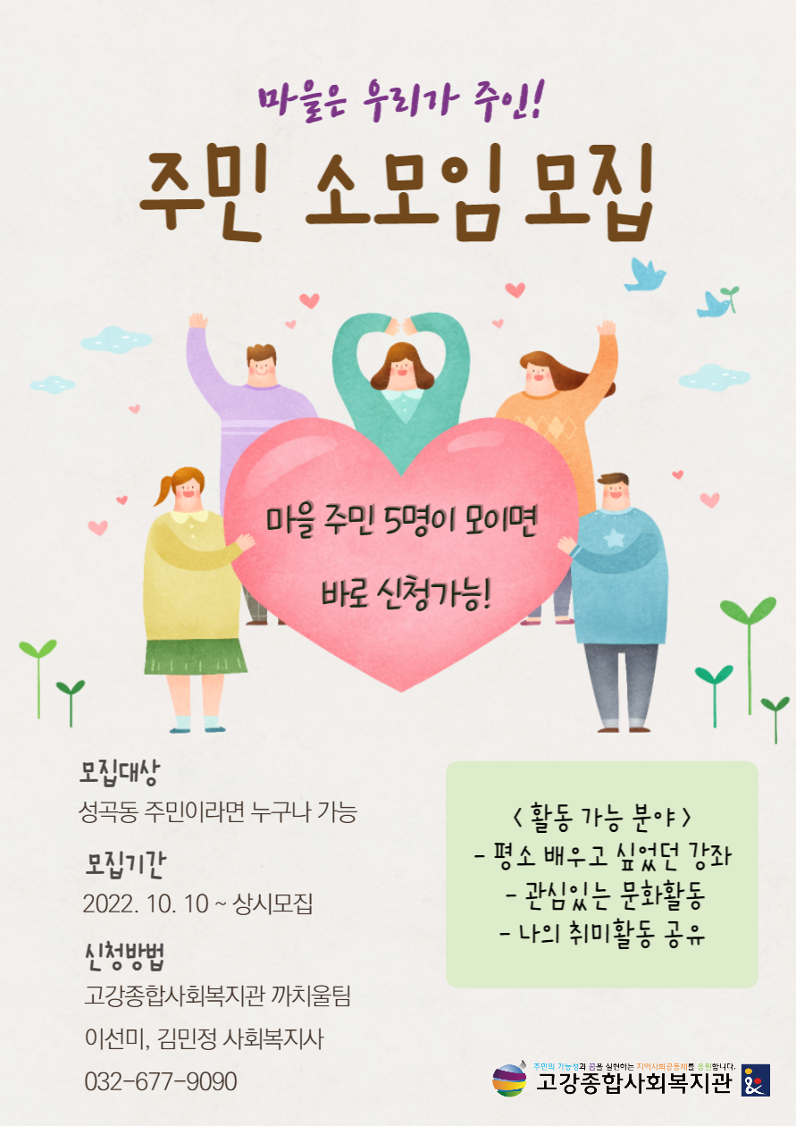 담당 : 까치울팀 이선미, 김민정 사회복지사 (032-677-9090)