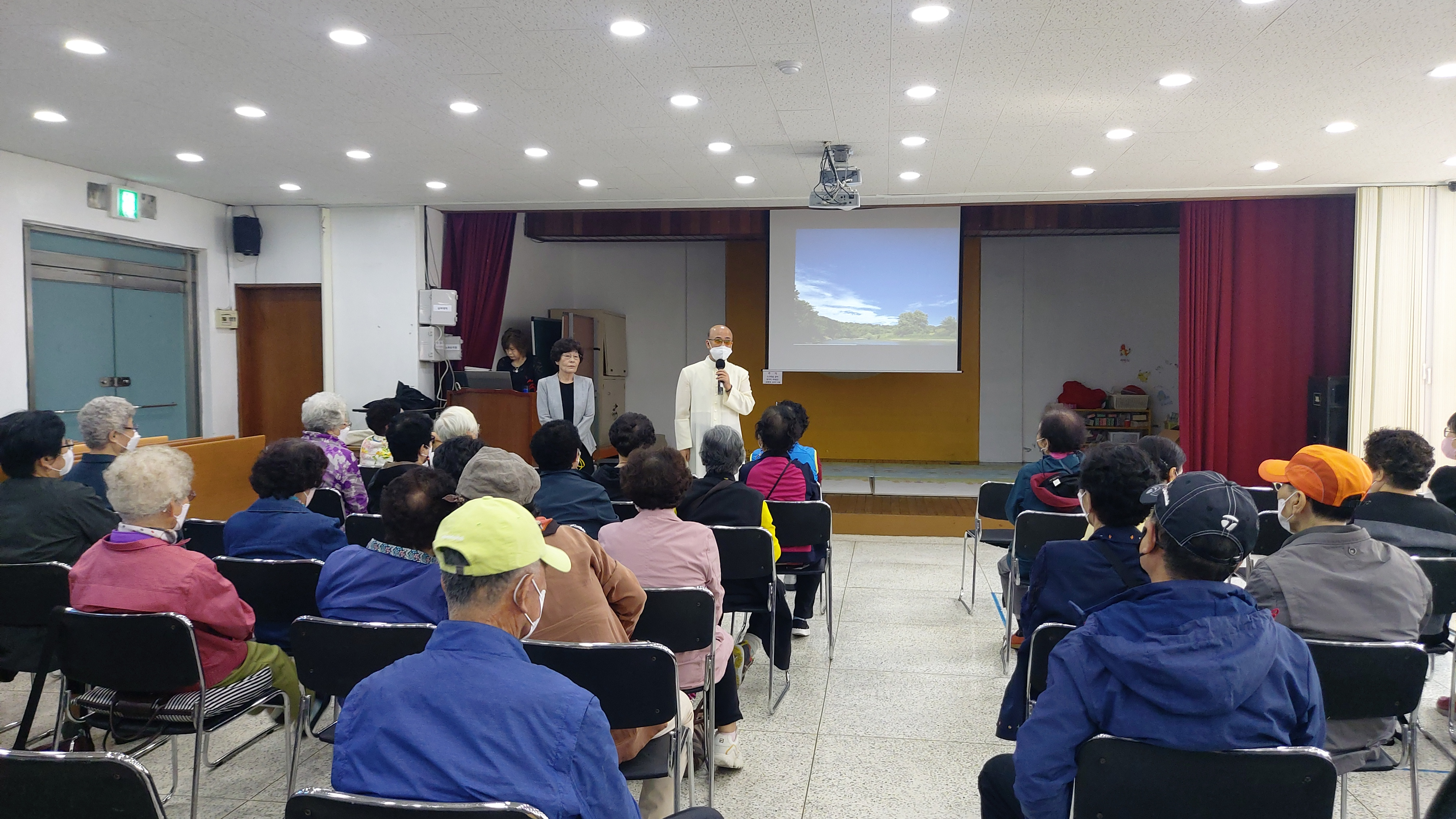 은빛교실 어르신들과 만나는 첫 날. 고강동성당에서 노인대학을 담당하고 있는 성종식 학장님과 진행을 도와주시는 봉사자님들과 함께 강당으로 입장하는 어르신들을 한 분 한 분 맞이하며 인사드렸습니다. 강당으로 입장하는 어르신들의 표정이 밝습니다. 서로 나누는 이야기를 들어보니 개강이 미뤄졌을 때 많이 아쉬우셨고, 이렇게 많은 사람과 만나는 자리를 그리워한 분들이 많았습니다.