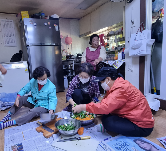 “그냥 저는 항상 즐거운 마음으로 있었어요, 어르신이 반갑게 맞이해주시니까 좋고, 함께 준비한 김승섭 통장님이 워낙 좋으니까 이런 자리도 함꼐 할 수 있었어요”