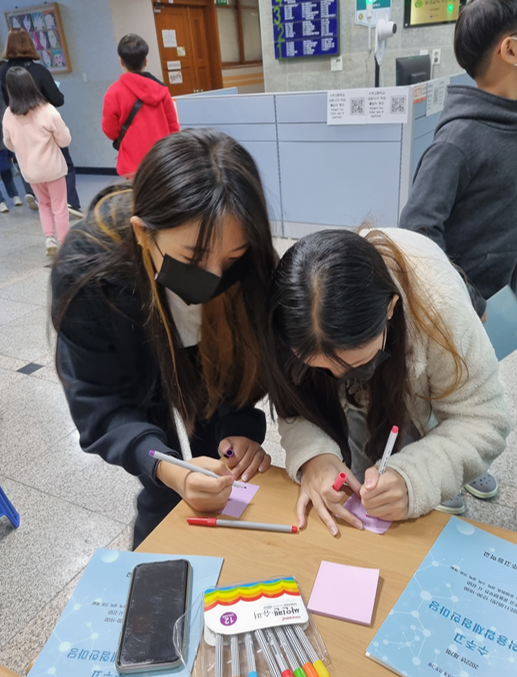 부모님을 따라온 아이들부터 같은 학교에서 공부하는 후배, 친구 등 많은 지역주민이 참여해주셔서 100개에 달하는 쪽지가 붙었습니다.