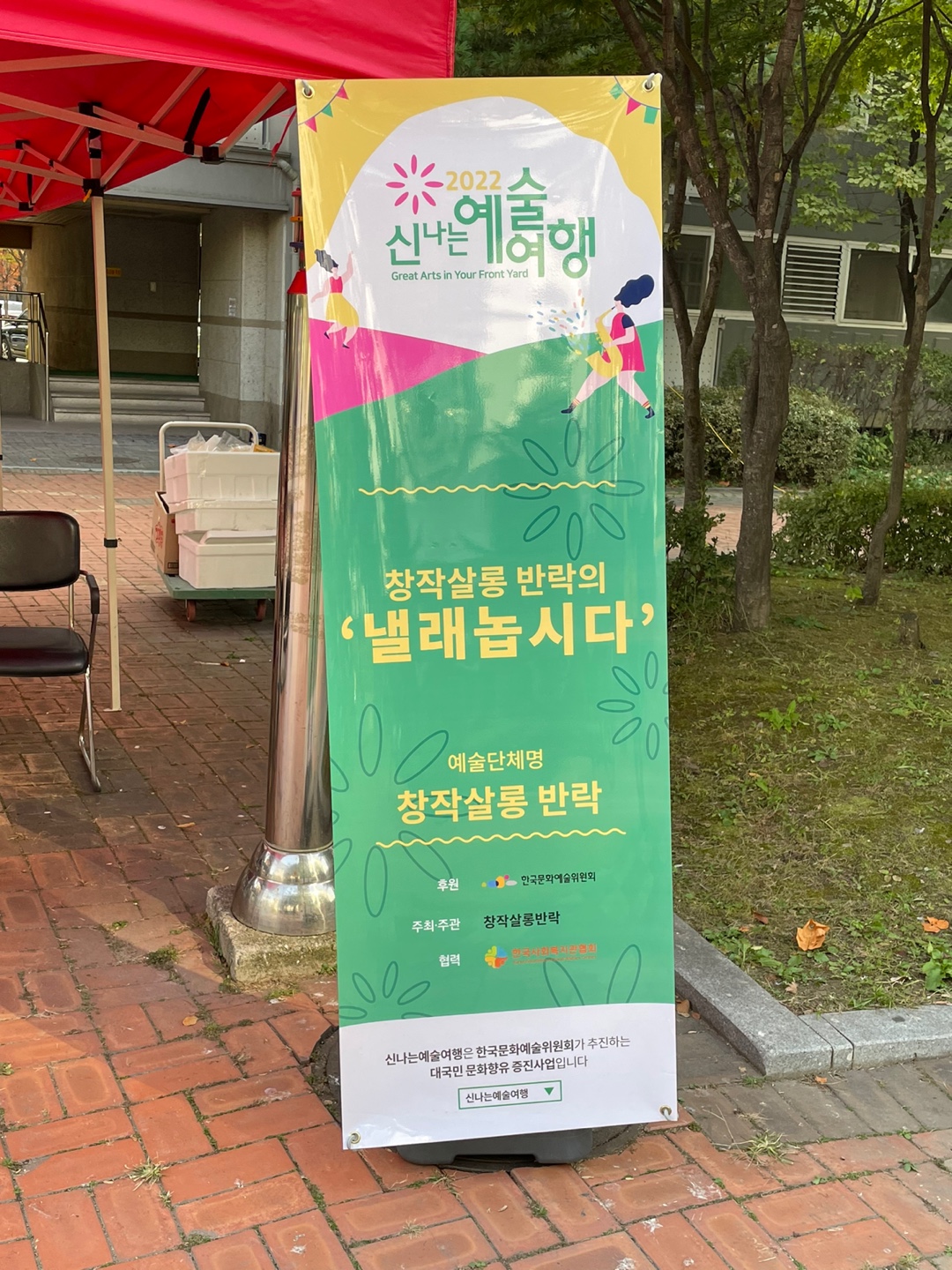 점심식사 후 마지막 3부 활동인 ‘신나는 예술 여행’ 공연이 다채로운 만국기 아래 펼쳐졌습니다.