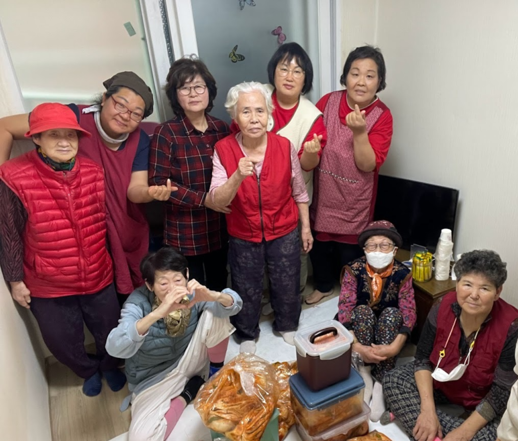 소감을 나눈 뒤 어떤 분께 김치를 전달할지 구체적으로 정하고 나니 어느덧 헤어질 시간이 되었습니다. 다 함께 손을 모으니 정리도 금세 끝납니다. 서로 인사 나누고 헤어지는 어르신들을 보니 아침에 만날 때보다 서로를 친근하게 대하시는 것을 느낄 수 있습니다.