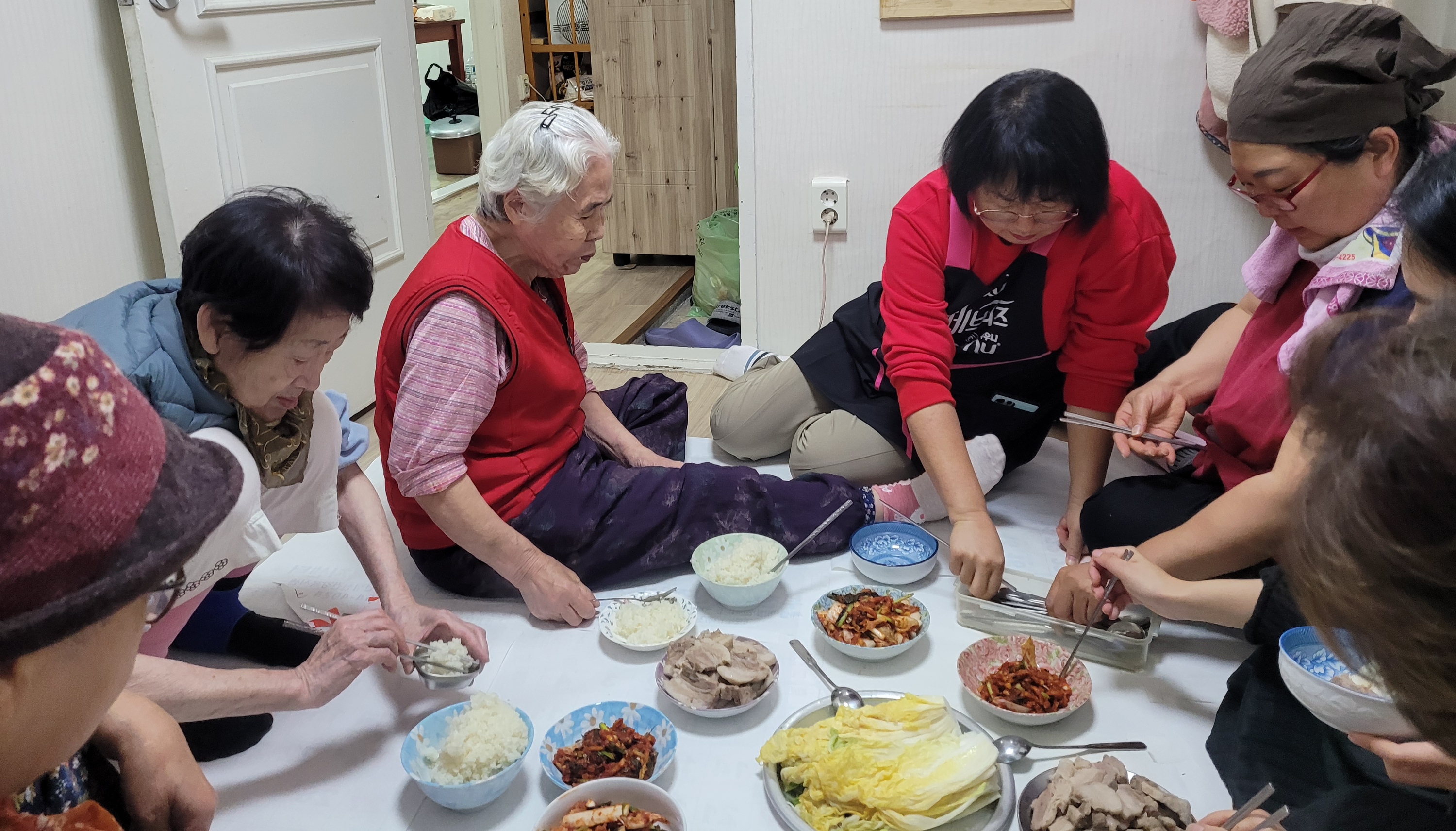 만나기로 약속한 시간에 어르신 댁에 도착했습니다. 현관문을 열기 전부터 사람들의 대화 소리가 들립니다. 평소 조용하던 집이 오랜만에 사람들의 이야기 소리로 떠들썩합니다.