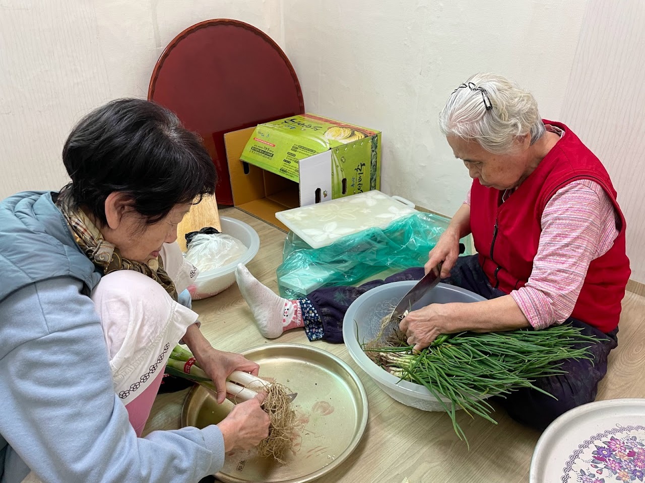 시력이 안 좋아서 오늘 같이 김장하는 걸 어려워하실 줄 알았는데 우리 중에 제일 잘 무치시더라고요"