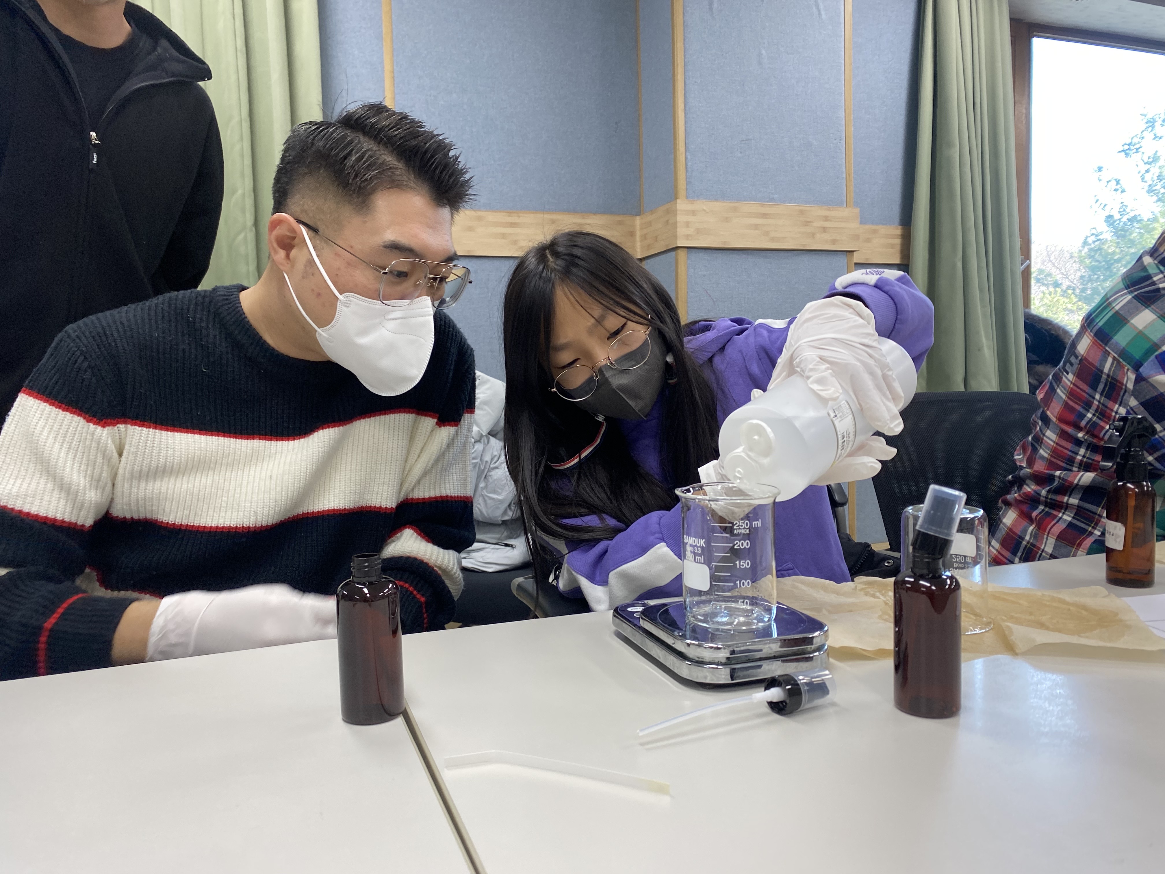 둘씩 짝을지어 핸드크림을 만듭니다.
