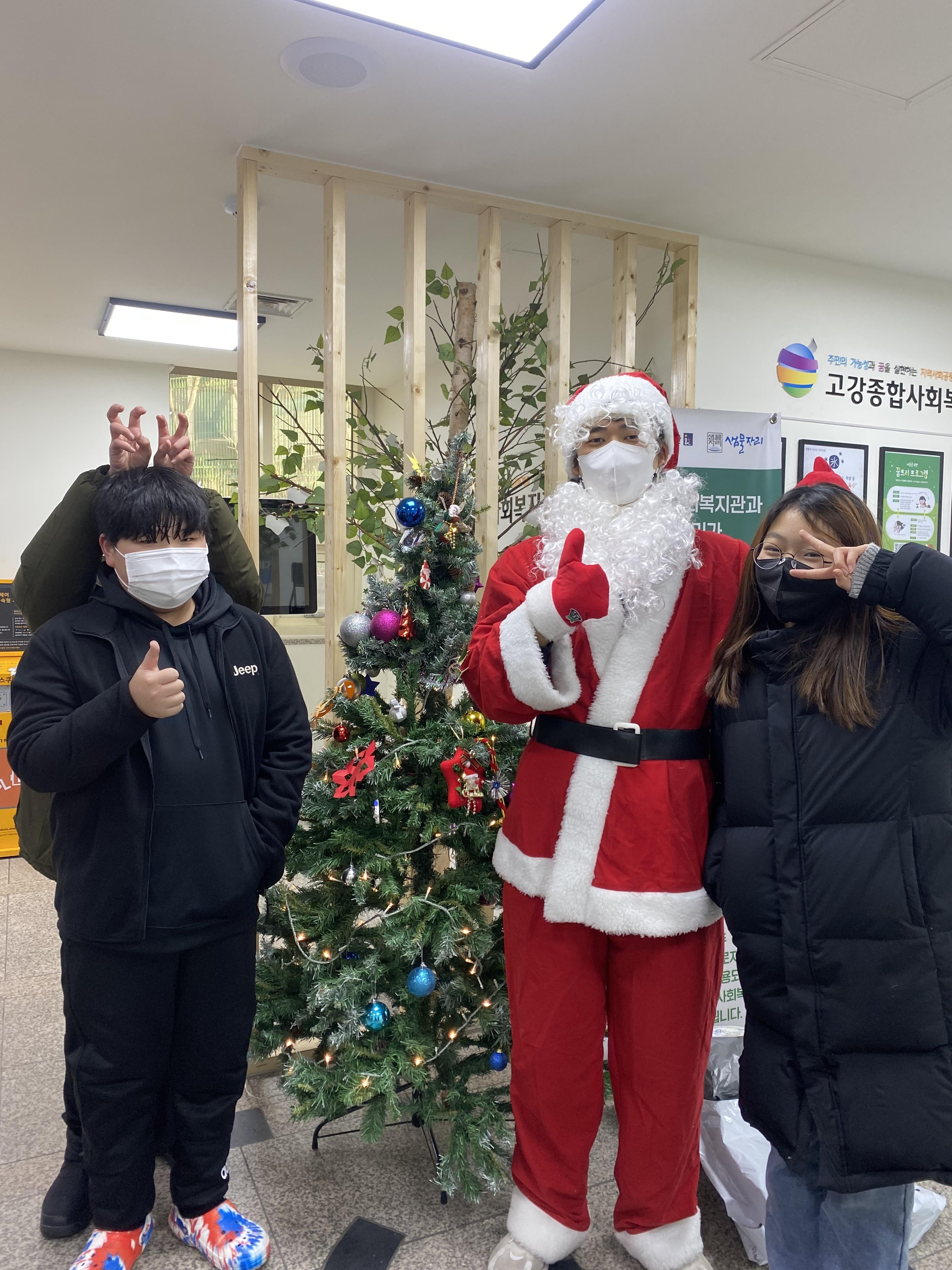 ** 산타할아버지로 복지관의 파트너 김석민 선생님이, 아이들이 제일 좋아하는 맛있는 치킨으로 네네치킨 고강점 사장님이 함께해주셨습니다.