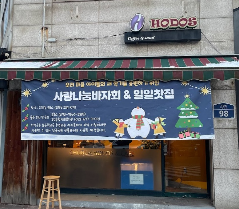 고강1동은 오랜시간동안 주민들이 함께 사랑나눔바자회를 하고 있습니다. 사랑나눔 바자회는 카페 호도스를 자주 방문했던 수주초등학교 학부모님들과 호도스 사장님이 함께 해 온 바자회입니
