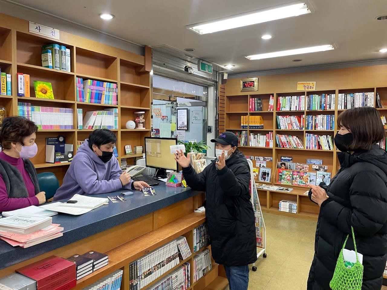 바자회 계획을 설명드리고, 협조를 구하기 위해 꾸준히 바자회를 준비하는 데 힘써 오신 두 분의 주민과 함께 제일문고에 찾아가 이야기 나누었습니다.