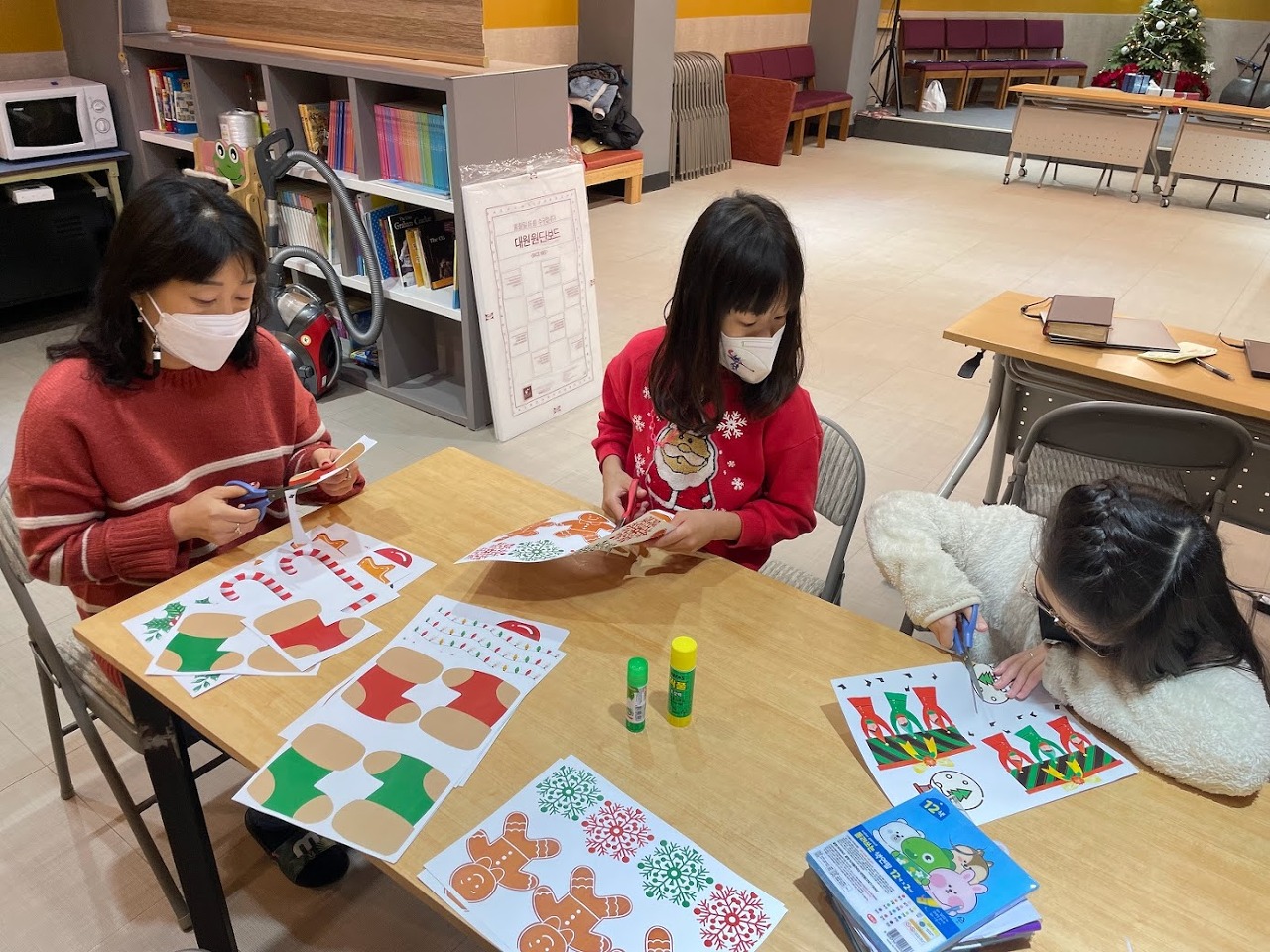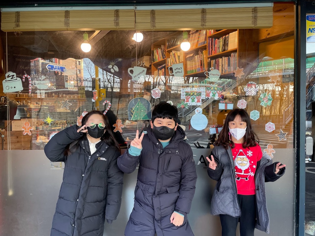아이들의 도움을 받아 연말 분위기가 물씬 느껴지도록 꾸며진 공간. 나가서 보니 더 예쁩니다.