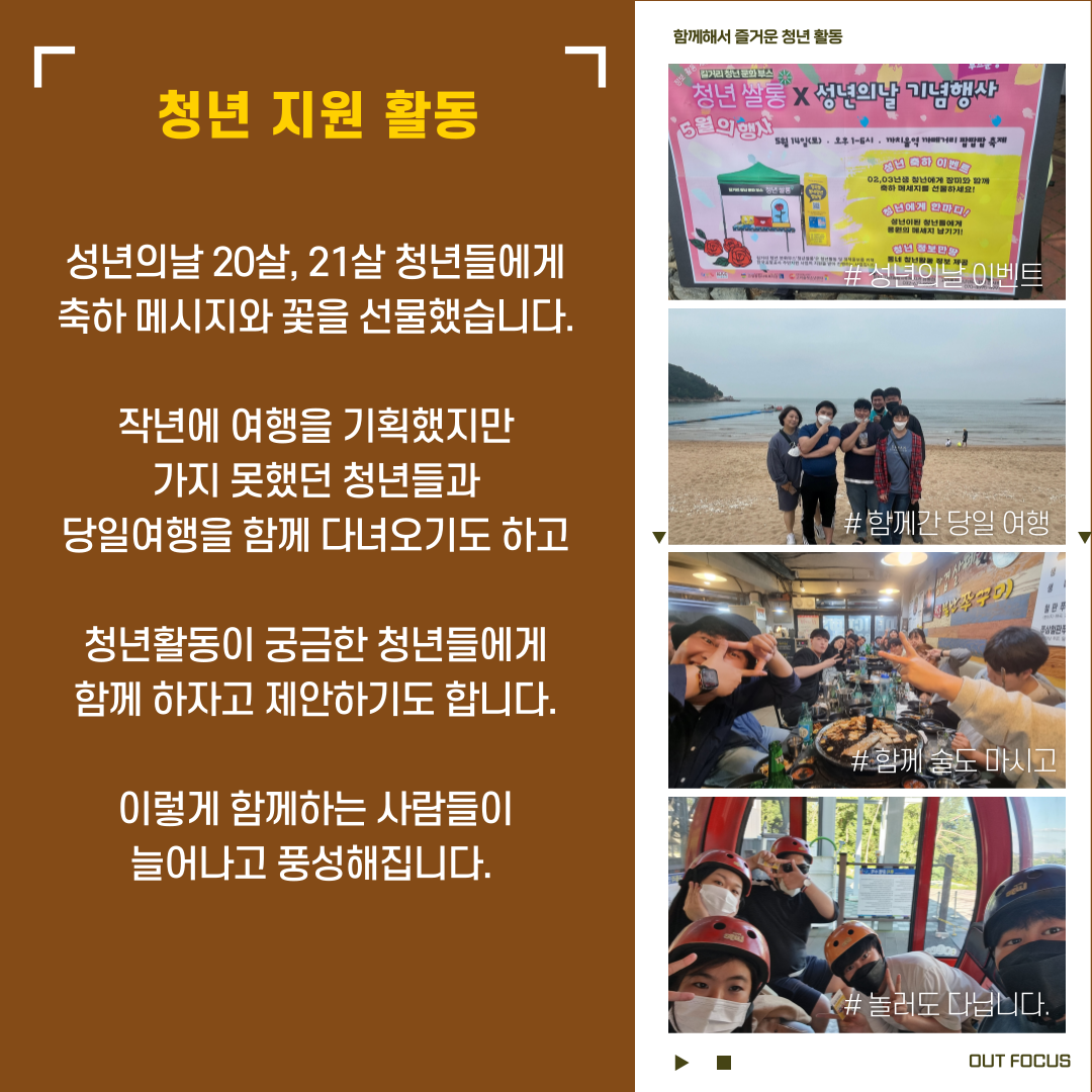 2022년에도 다양한 청년활동이 있었습니다만... 담당자의 바쁘다는 핑계로 소식을 잘 전하지 못했습니다.