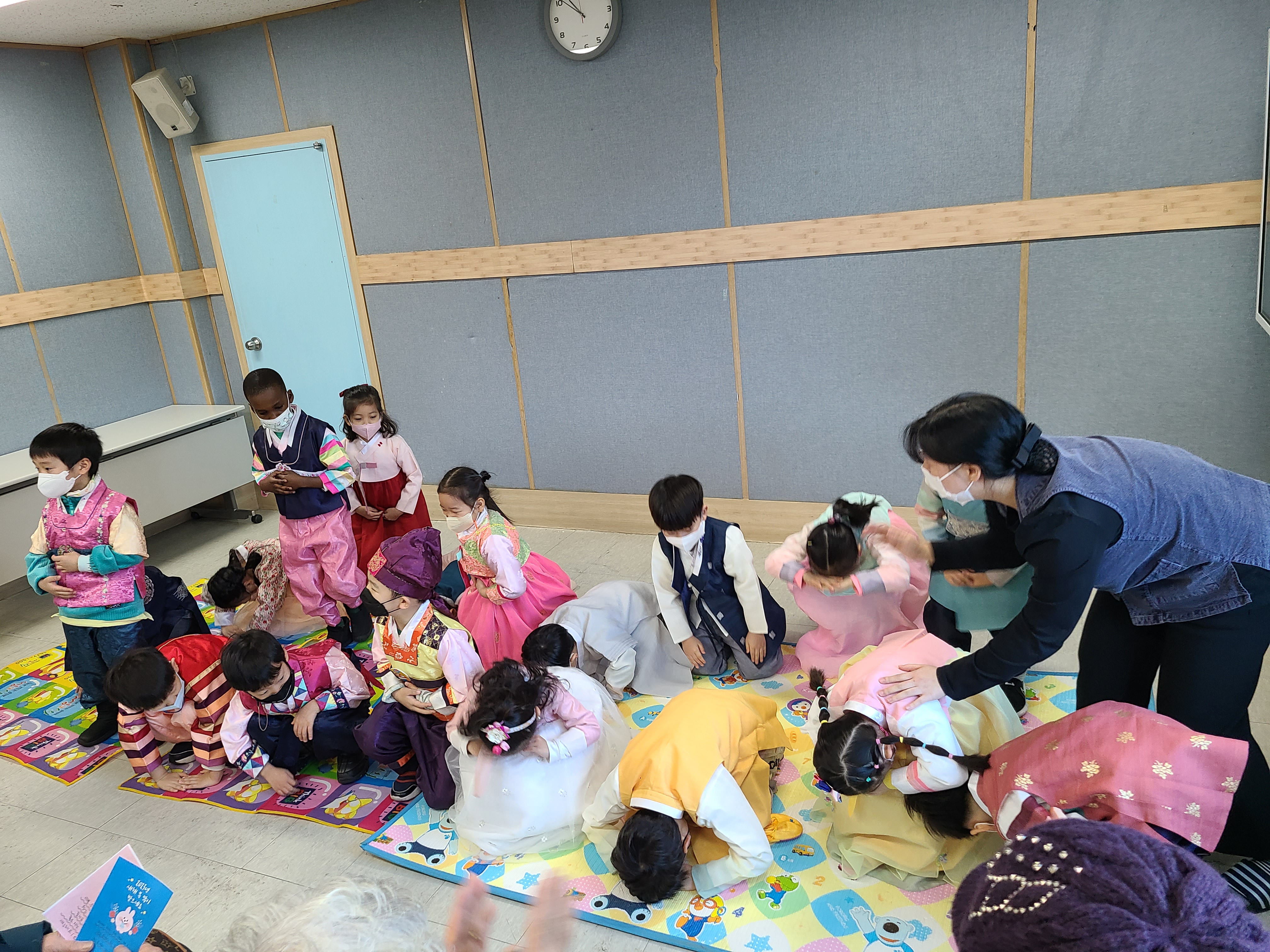 고강어린이집의 형님반(6세, 7세)아동들이 올라와 어르신들께 새해 인사를 드렸습니다.