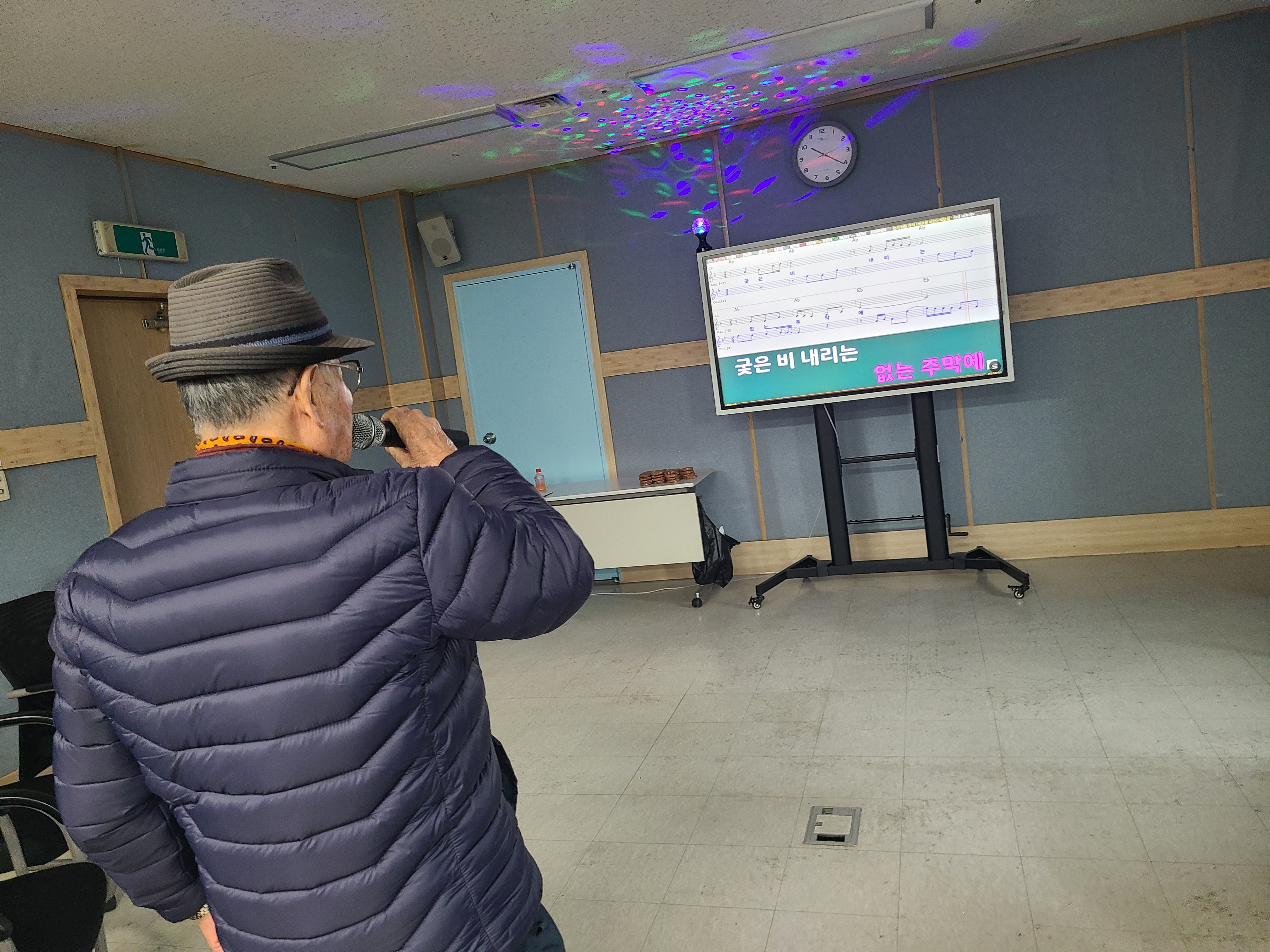 코로나 때문에 경로식당에 모이는 것도 힘들었습니다. 더구나 마이크를 돌려가며 노래를 부르는 것은 더 위험한 일이었습니다.