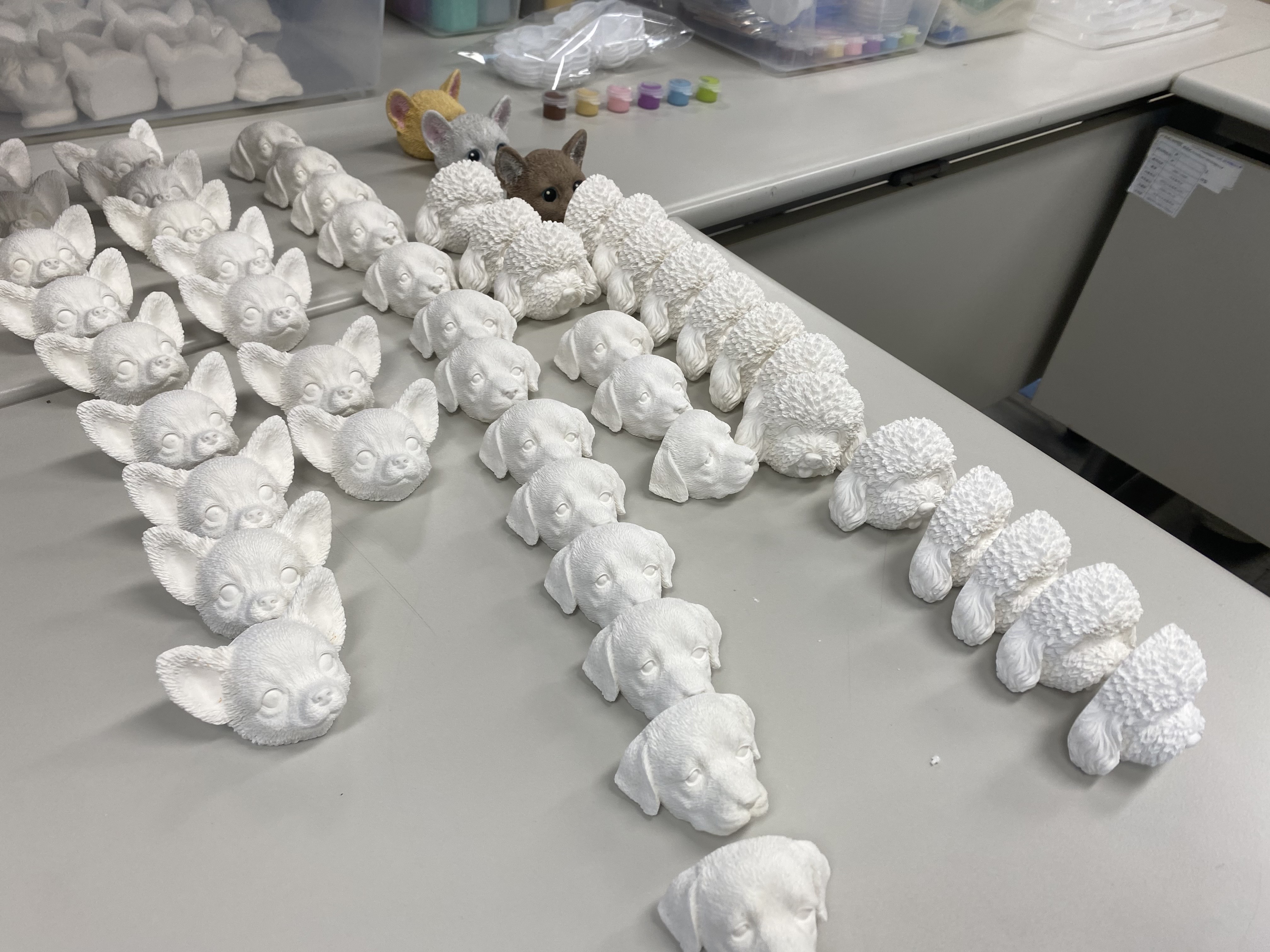 아이들과 함께 하는 활동인만큼 아이들의 눈높이에 맞게 귀여운 강아지와 고양이 등의 석고로 준비해주셨습니다.