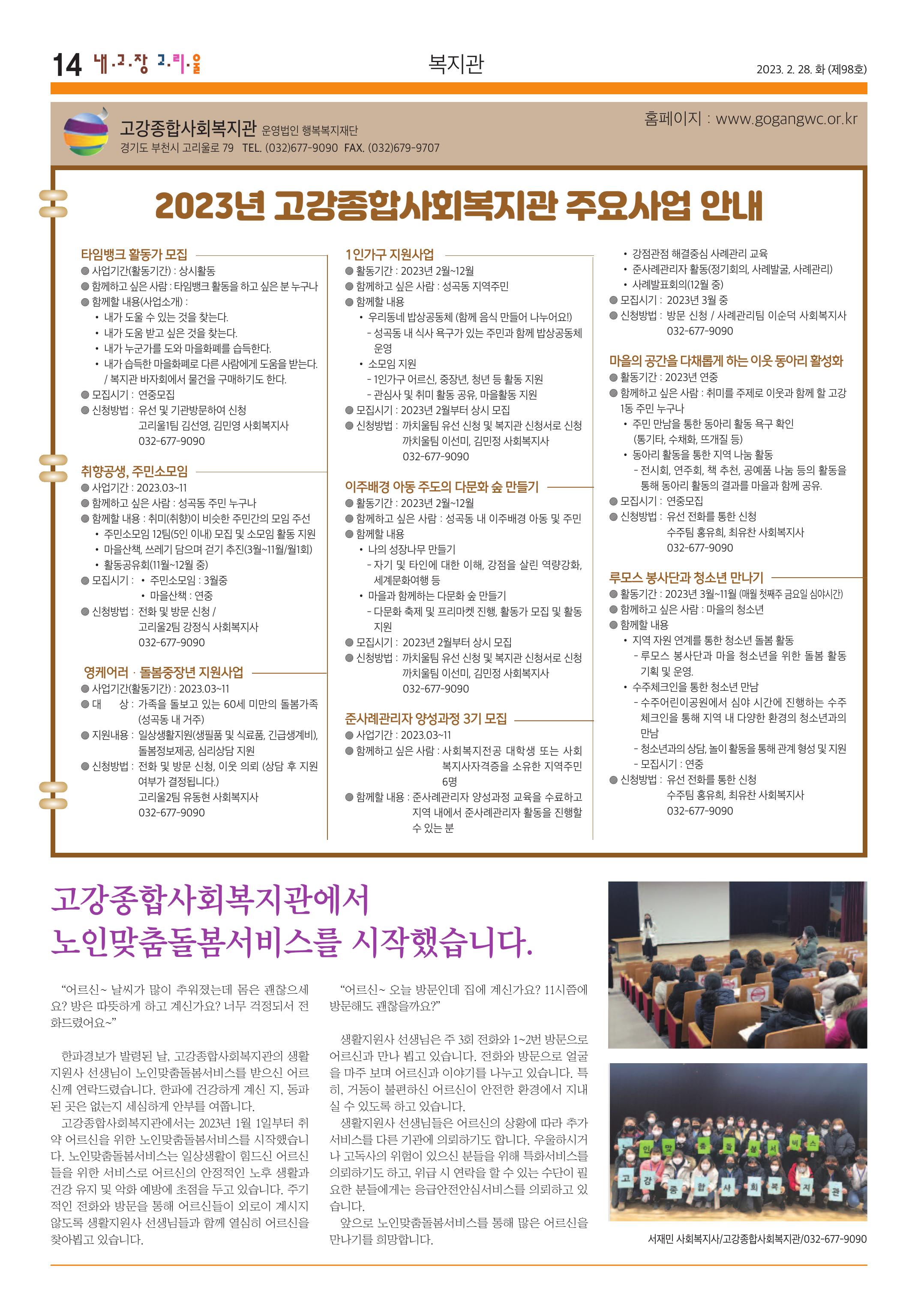 이번 고리울신문에 실린 23년 주요사업입니다.