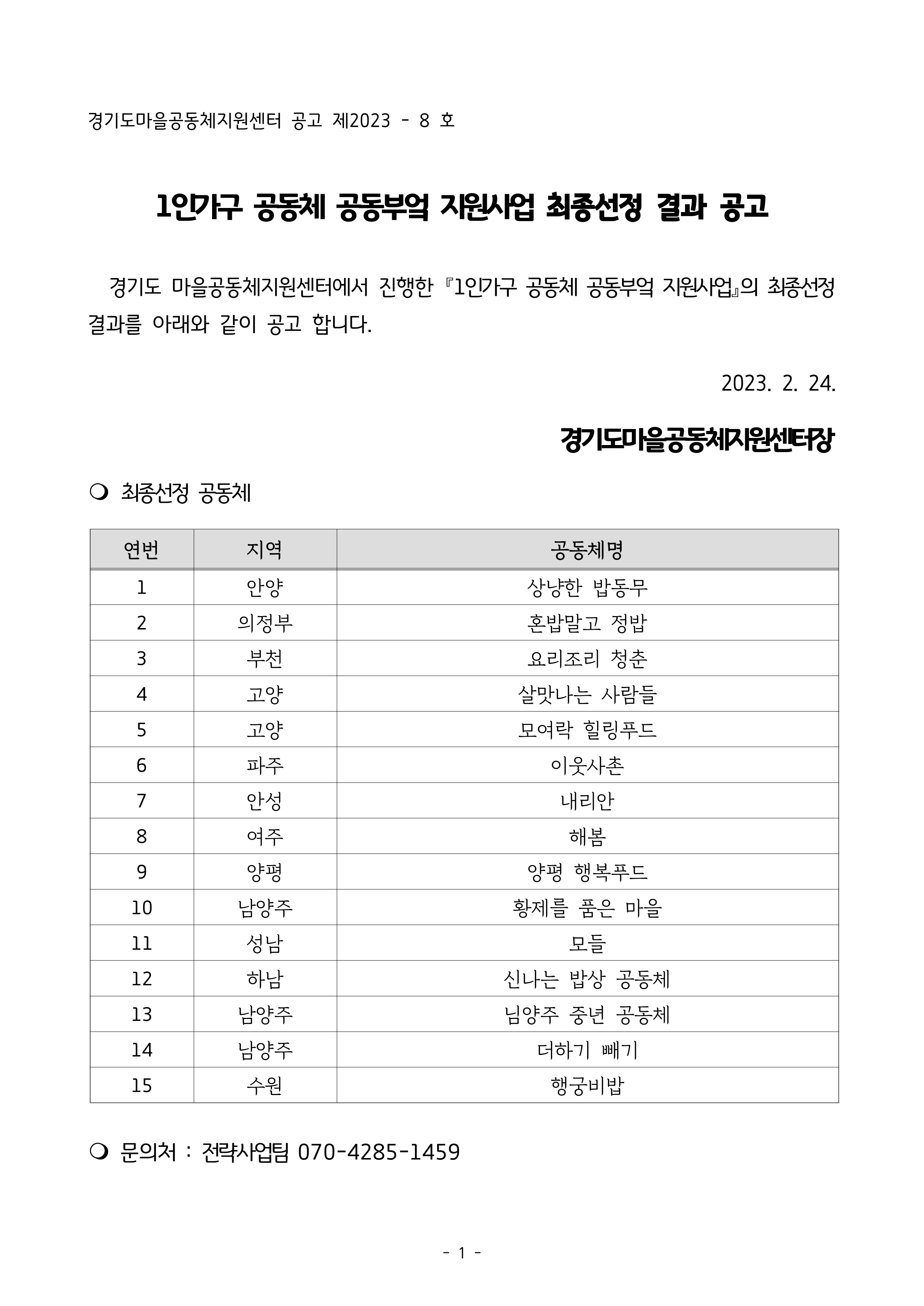 1. 공동부엌 사업 알게 되다.