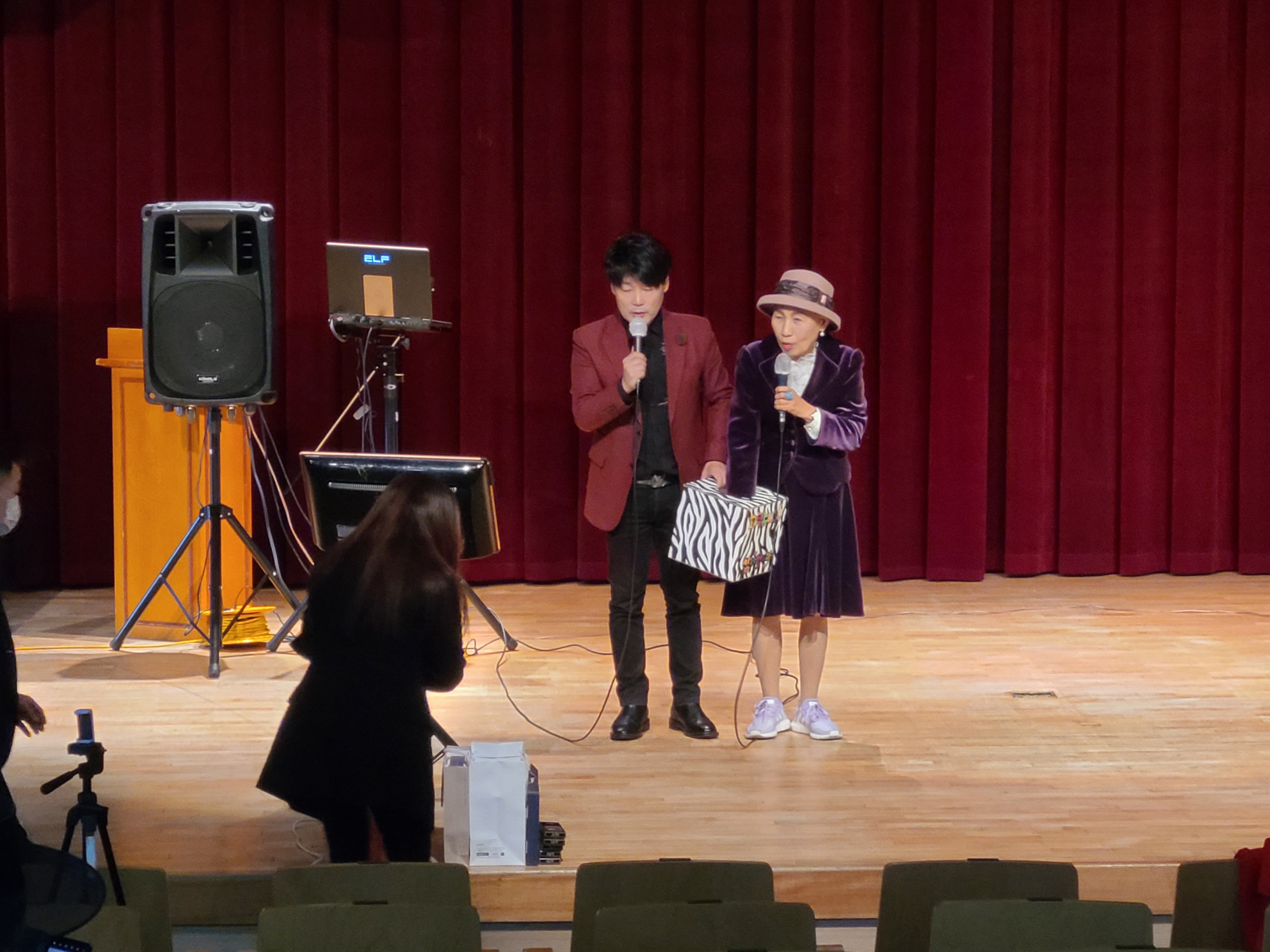 오늘은 탤런트 김경애님, 무궁화꽃예술단의 모규순 단장님, 가수 조재권님, 김재식 판소리 연구소장님이 오셔서 즐거운 노래공연을 해주셨습니다.