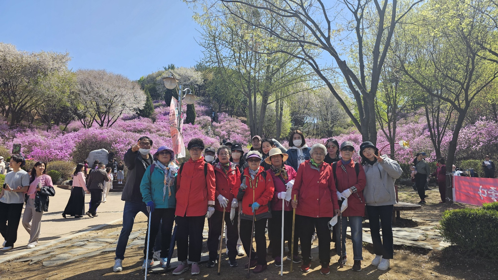 어르신들은 오랜만의 꽃구경에 형형색색의 예쁜 옷을 곱게 차려입고 오셨습니다^0^