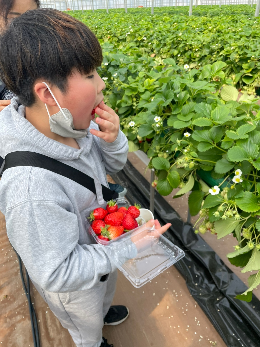 30여 분 간의 체험이 끝나고 아이들 손에는 직접 딴 딸기가 가득 들려있습니다.