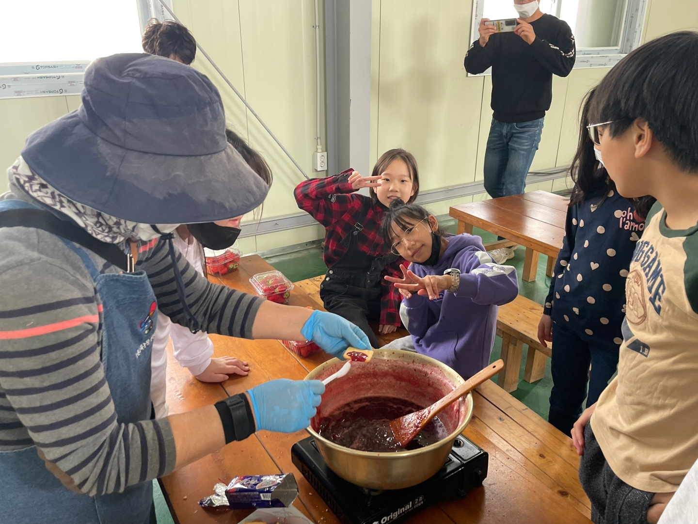 아이들이 왔다고 특별히 사장님께서 수제 잼과 과자를 꺼내주셨습니다.