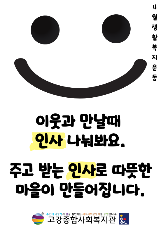 일상에서 마주칠 수 있는 다양한 공간에 포스터를 부착한 만큼 많은 주민이 생활복지운동을 접하고, 실천하는 4월이 되길 바랍니다.