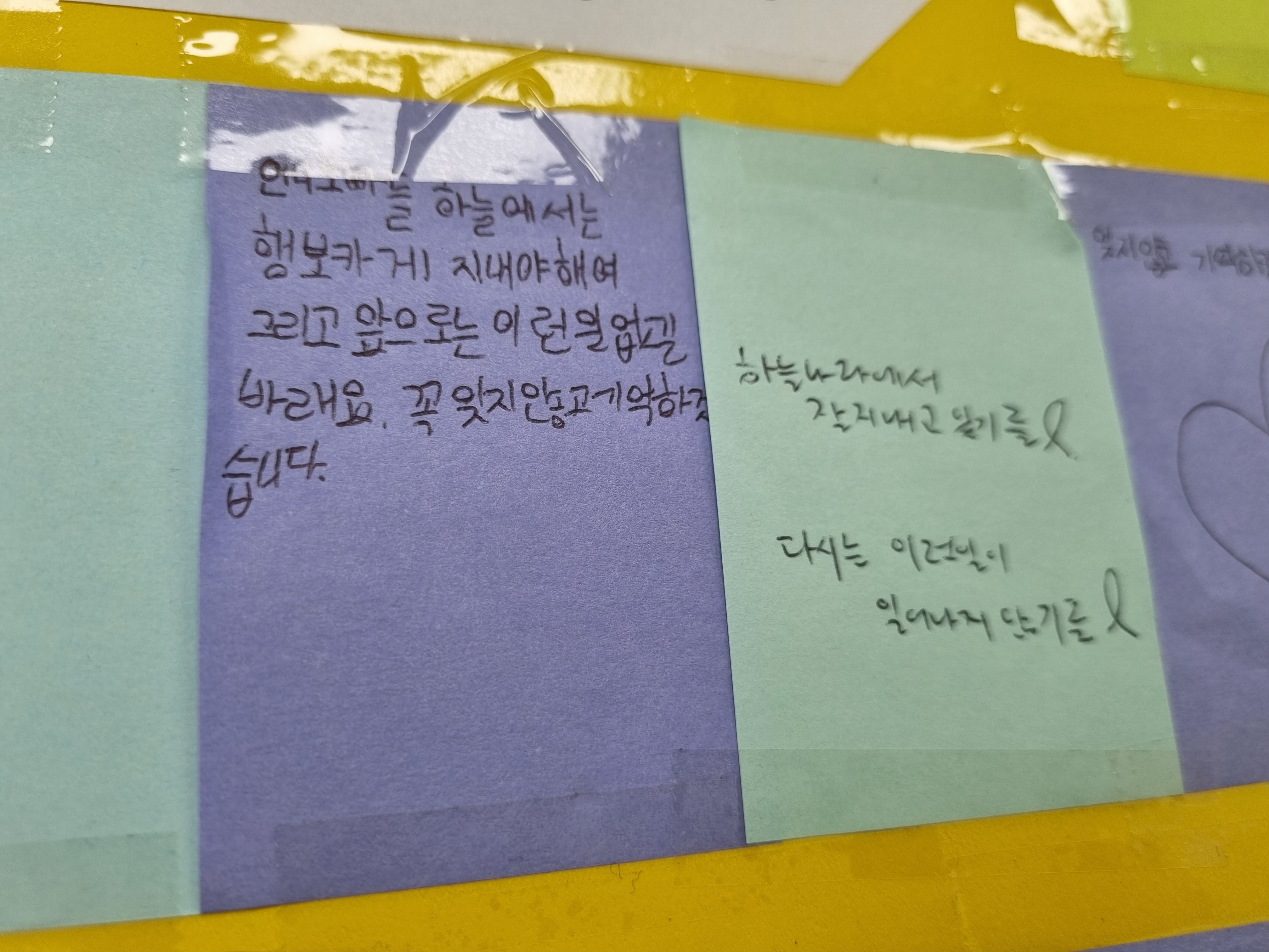 지난 11일(화) ~ 13일(목)은 자율적으로 추모메시지를 적는 시간을 가졌습니다.